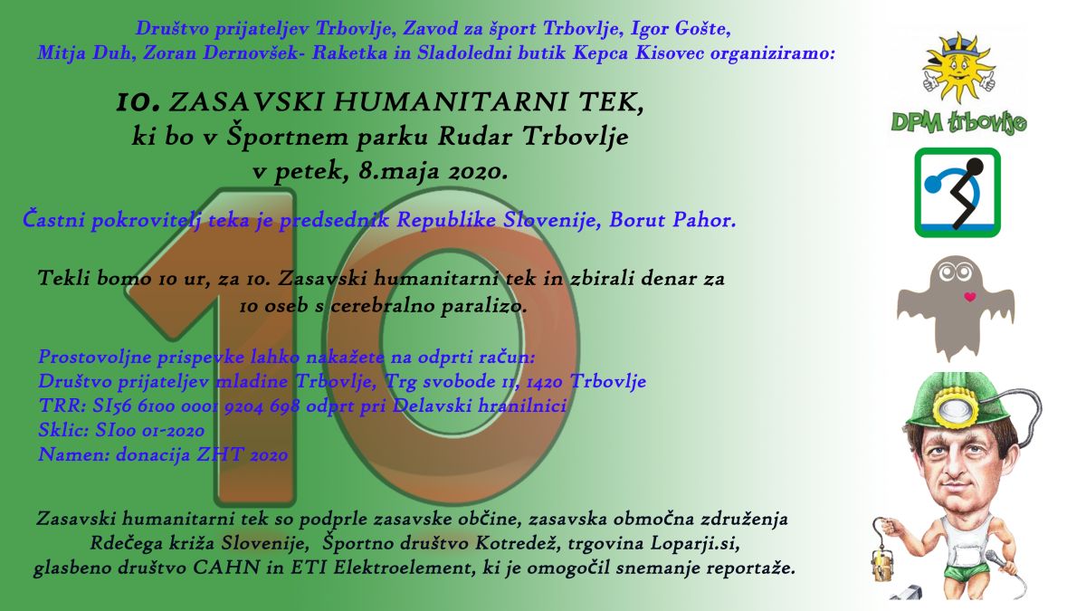 Včeraj sem bil srečen, da bom še naprej lahko tekel in se pripravljal na 10. zasavski humanitarni tek, ki naj bi bil 8.maja v Trbovljah pod častnim pokroviteljstvom predsednika RS Boruta Pahorja. Prostovoljne prispevke na posebnem računu DPM Trbovlje za deset oseb s cerebralno paralizo, že zbiramo. Vse zbrano bo šlo zanje.