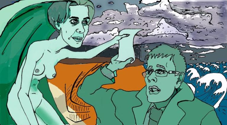 Oblak ne ve, in val ne kam, - kam nese me obup, ne znam. Svoj novi pristan je Möderndorfer vzljubil z vso močjo, z vso dušo in z vsem srcem. Ob pogledu na Pozitivno Slovenijo, na ta slovenski Rt dobre nade, se je Jani tako raznežil, da je potočil solzo. In ko je njegova skuza padla na to trdno skalo slovenske politike, se je ta razklala, na dvoje, na troje … Nadaljevanje poznamo. Jani je preživel s skokom v Zavezništvo Alenke Bratušek, to je na tisti del umetnega otoka, ki je po volilnem potopu še štrlel iz vode.