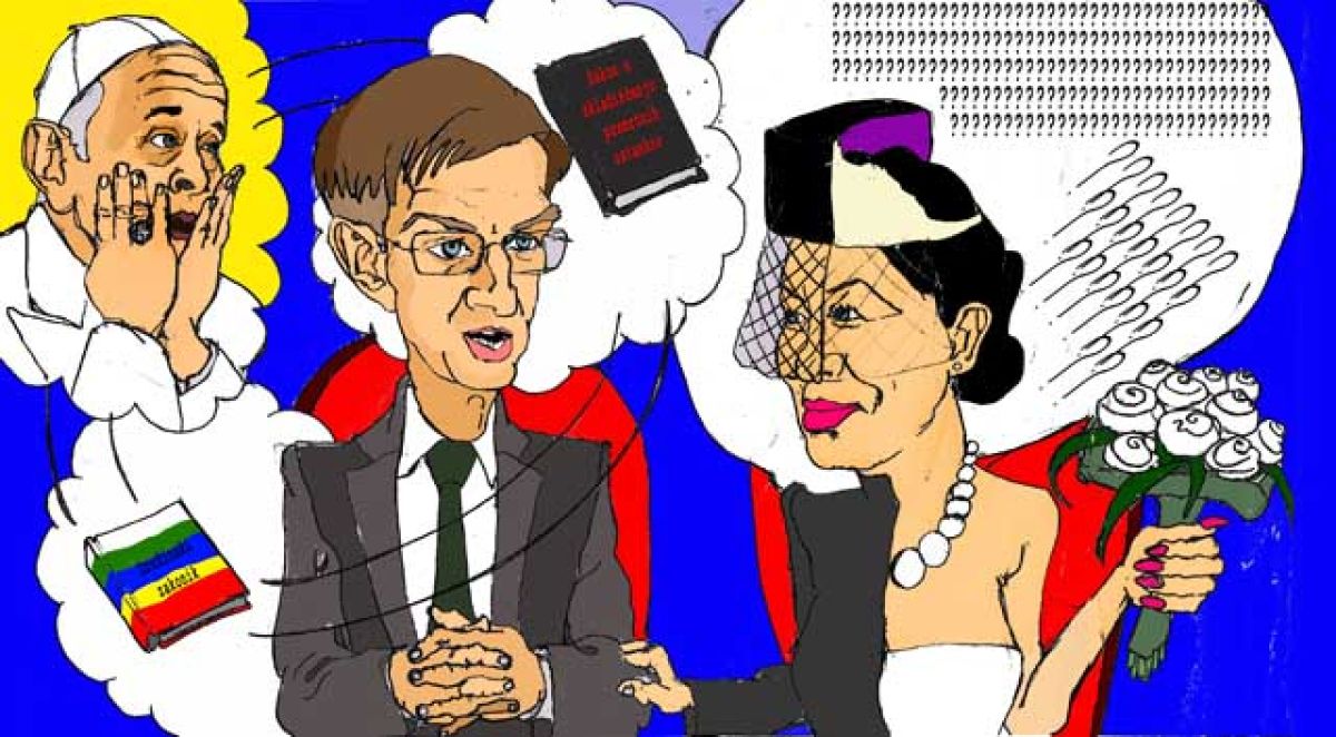 Zdaj se, kot rečeno, na obisk k papežu Frančišku odpravlja aktualni slovenski premier Miro Cerar, ki mora seveda še pred odhodom proučiti nekatera odprta vprašanja in se po skrbnem premisleku odločiti, kako in kaj in če sploh. Slovensko javnost (in vatikanski protokol) zelo zanima ali bo Cerarja na poti spremljala tudi potencialna soproga Vesna. Potencialna zato, ker premier zaradi obilice drugih državniških opravil, še ni utegnil sprejeti odločitve o morebitni poroki z njo, ki so jo kak mesec nazaj napovedovali nekateri mediji. Ali bo gospa odpotovala z njim v Rim, pa se bo Miro Cerar odločil takoj po tem, ko bo razrešil zadrego glede protokolarnega darila, ki ga bo ob prililožnosti obiska izročil papežu Frančišku. Izvedeli smo, da trenutno okleva med mavrično izdajo Družinskega zakonika in luksuzno izdajo Zakona o okolju prijaznem skladiščenju posmrtnih ostankov.