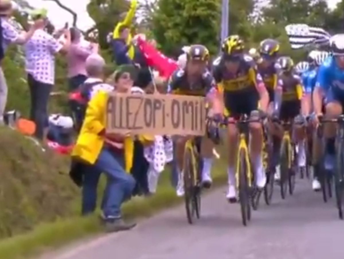Do nesrečnega dogodka je prišlo 26. junija, ko je gledalka prišla spremljat prvo etapo Toura z namenom, da bi televizijske kamere opazile njeno sporočilo. Na velik kos kartona je napisala Allez, Opi-Omi, s tem naj bi želela pozdraviti dedka in babico in opozoriti na svoje nemške korenine.