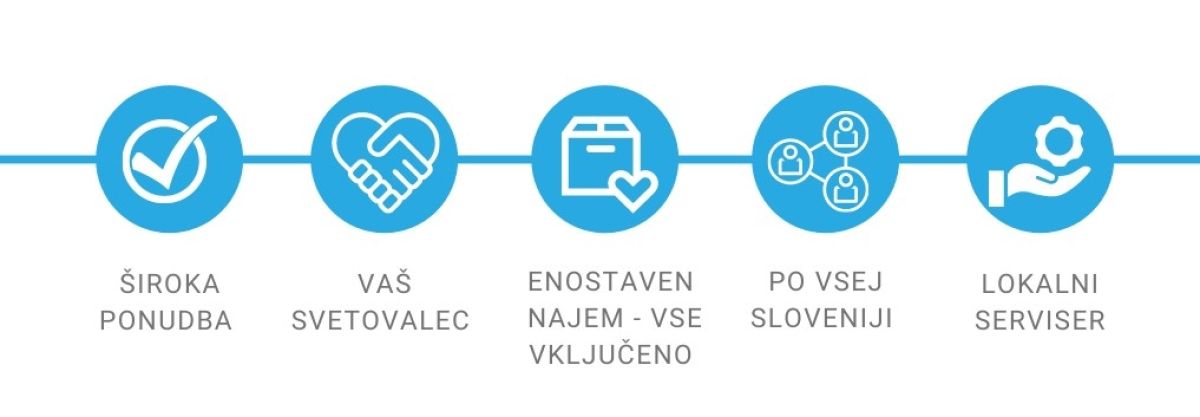 Najem nudi brezskrbnost, saj podjetje razbremeni visoke investicije v nakup lastniškega tiskalnika. Podjetje nima skrbi s tiskalnikom. Z najemom prihrani stroške vzdrževanja in popravil tiskalnika.