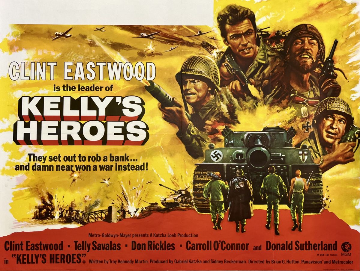Kelly's Heroes je komična drama o ropu, ki se zgodi v času druge svetovne vojne. Film iz leta 1970 je režiral Brian G. Hutton in govori o nenavadni skupini ameriških vojakov, ki se odpravijo na posebno nalogo in sicer, da bi oropali francosko banko, ki se nahaja za nemškimi bojnimi linijami, v njej pa so shranjene nacistične zlate palice. In še ena zanimivost. Film je nastal v ameriško-jugoslovanski koprodukciji, posnet pa je bil predvsem v hrvaški vasici Vižinada na polotoku Istra. (Clint Eastwood, Telly Savalas, Donald Sutherland)