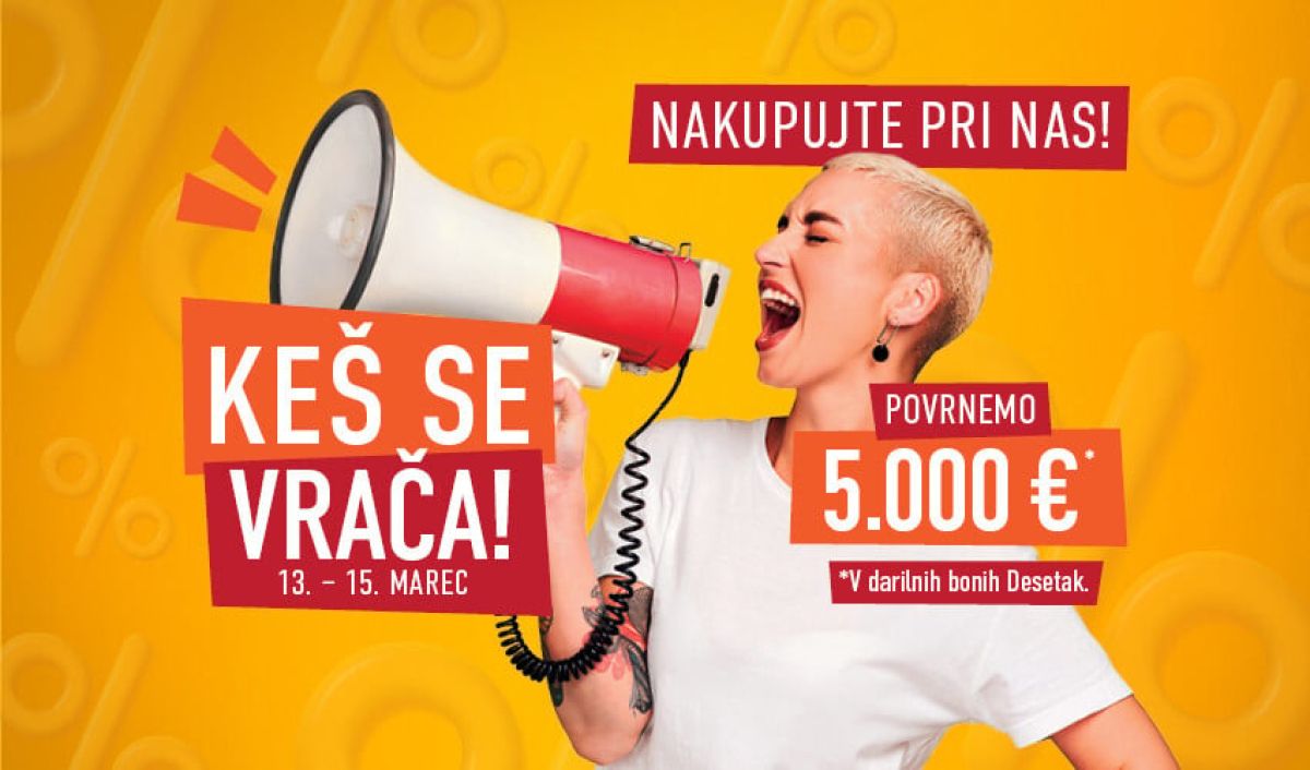 Od tega četrtka do te sobote bo v nakupovalnih destinacijah ALEJA in Citypark potekala velika nagradna igra »Keš se vrača«. Podelili bodo kar 10.000 evrov v skupni vrednosti v darilnih bonih DESETAK. Poleg nagradne igre vas v trgovinah čakajo posebne ponudbe in ugodnosti.