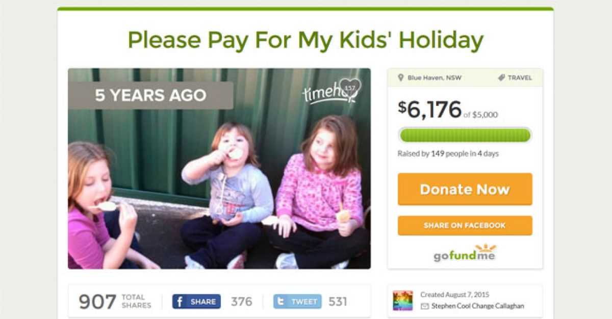 Avstralec Stephen Callaghan je preko spletne platforme za množično financiranje začel protestno zahtevati finančno pomoč politikov pri organiziranju dopusta za svoje otroke. S tem je izpostavil zahtevo po enakih možnostih in pravici vseh otrok do počitnic, ne glede na njihov družbeni status.