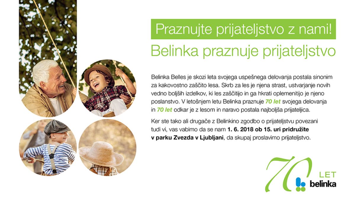 V petek, 1. junija od 15. ure dalje bo Belinka v parku Zvezda v Ljubljani proslavljala svojo 70-letnico.