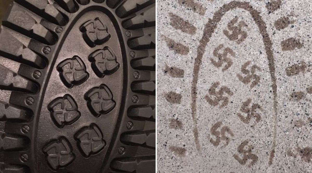 Ameriško podjetje iz Kalifornije je odpoklicalo škornje v vojaškem slogu, ko jih je stranka opozorila, da je v odtisu podplata vidna svastika.