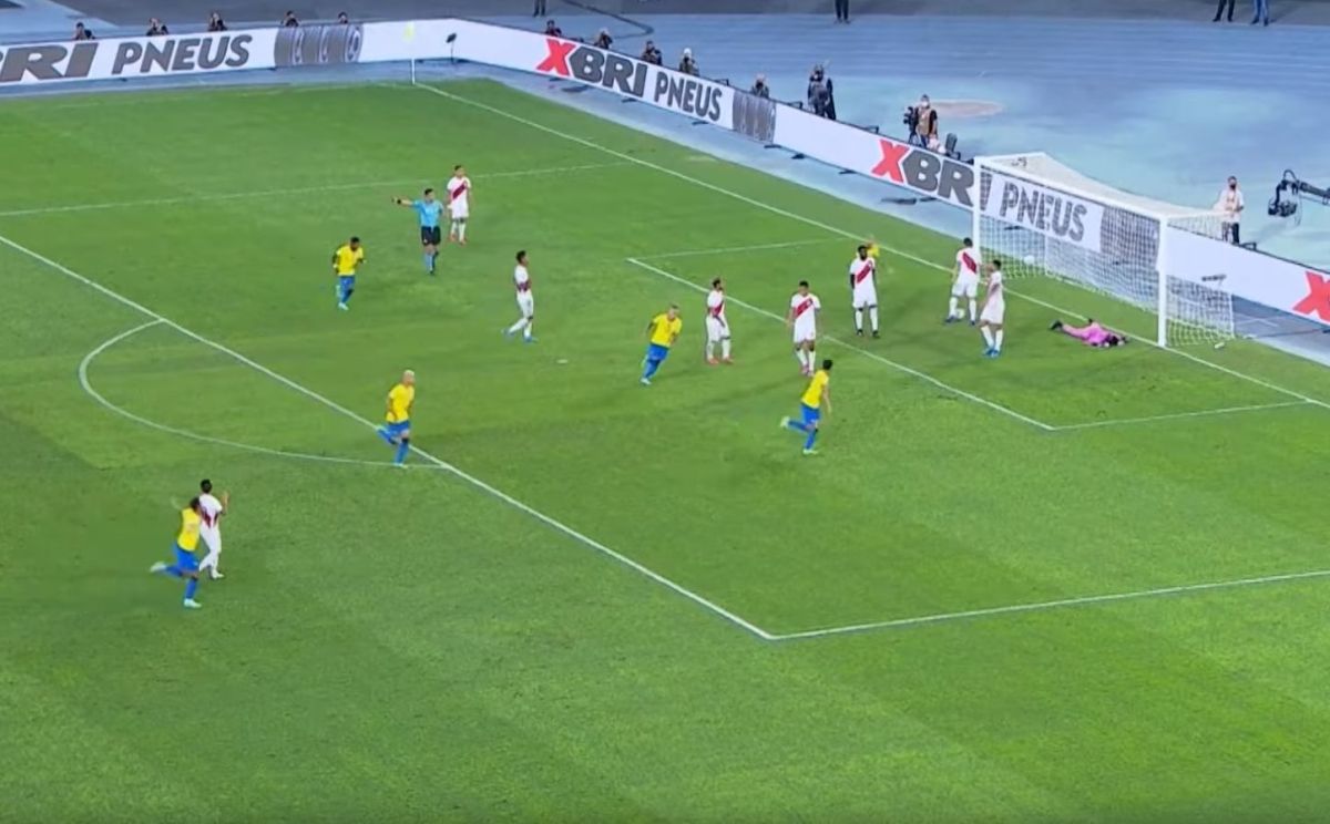 Brazilija je v prvem polčasu popolnoma prevladovala in si ustvarila številne priložnosti. Edini zadetek pa je padel v 35. minuti, ko je po podaji Neymarja zadel 23-letni Paqueta, sicer nogometaš francoskega Lyona. Neymar je v kazenskem prostoru preigral tri nogometaše Peruja, potem s šestih metrov z desne strani gola podal nazaj na sredino kazenskega prostora do Paquete, ki je z desetih metrov zanesljivo zadel.