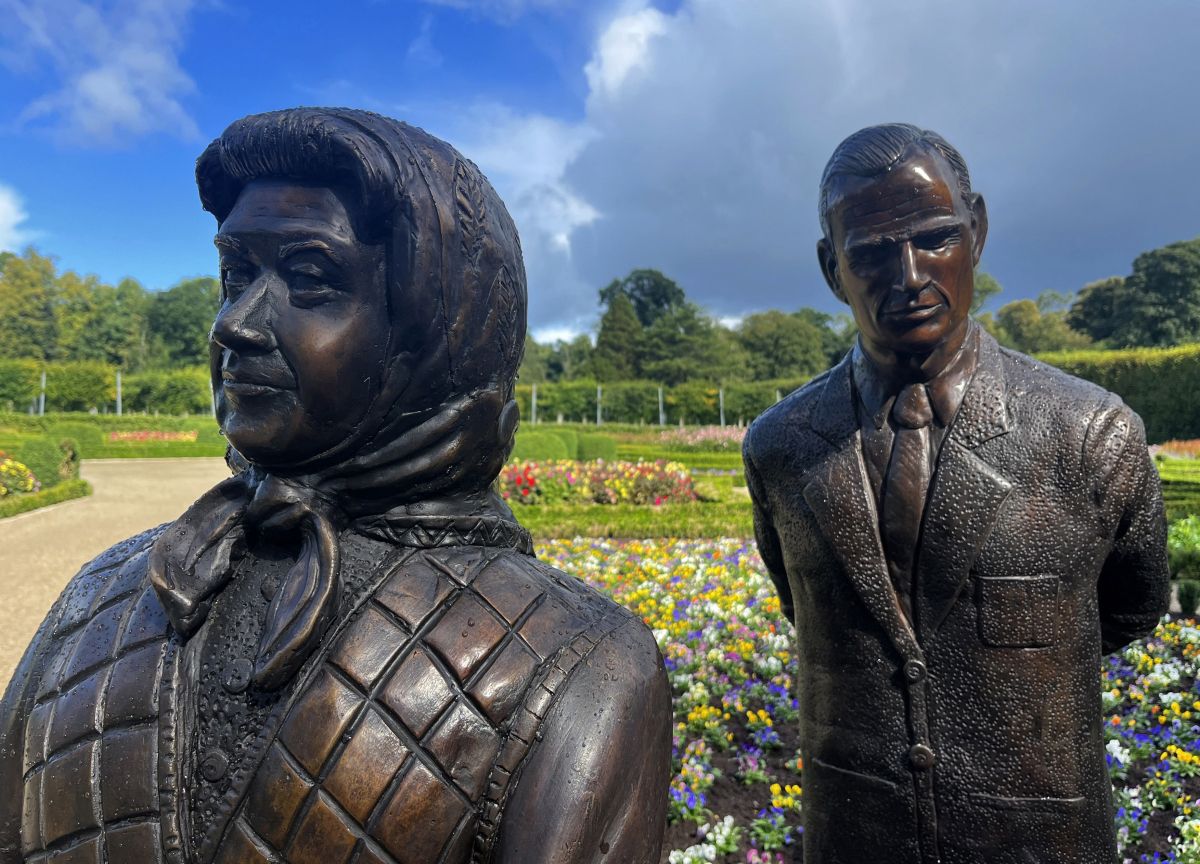 Kip kraljice, ki se je v starosti 96 let leta 2022 poslovila po več kot 70 letih vladavine, so odkrili so prejšnji teden severno od Belfasta v vrtovih gradu Antrim in poleg monarhinje upodablja njenega soproga, princa Filipa, ter pasja ljubljenčka pasme valižanski ovčar oz. corgi.