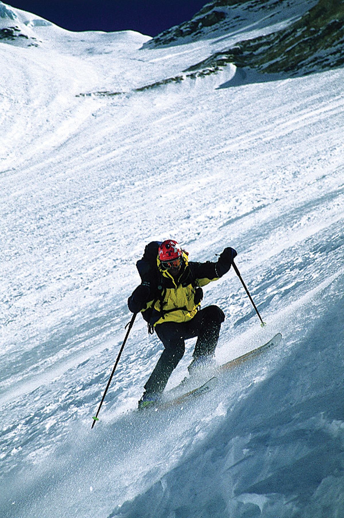 Ja. Tisto, za katero mislim, da je edina verjetna. Na žalost je tako, da se vzpona in smučanja ne da opraviti po isti poti. Vzpenjamo se po Česnovi smeri, ob smučanju pa je treba to smer med drugim in tretjim višinskim taborom zapustiti.