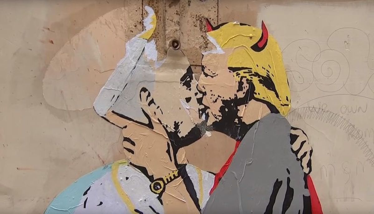 V Rimu grafit poljuba med papežem in "hudičevim" Trumpom