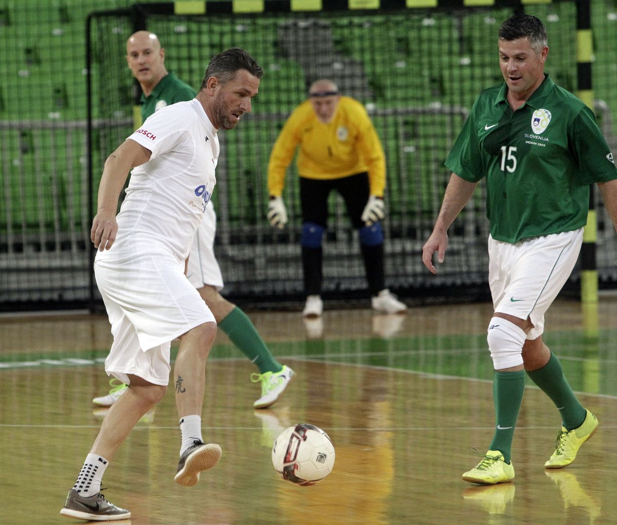 V dvorani Stožice sta se za dober namen v nogometu pomerili ekipi državnega zbora ter športnega društva Olimpikov.