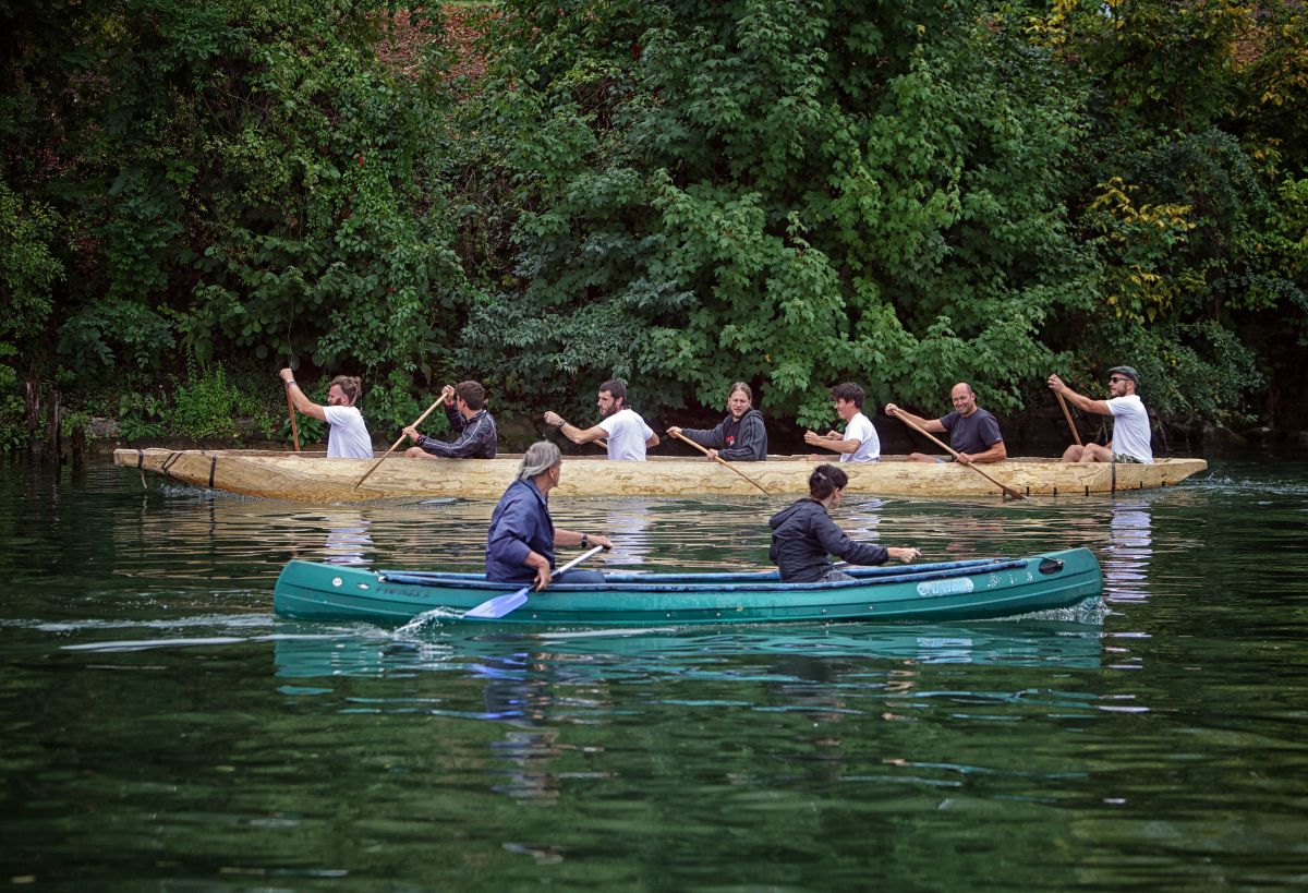 Po Ljubljanici so danes splavili repliko deblaka, ki so jo minula dva meseca v sklopu Projekta Navis gradili na Špici v Ljubljani.