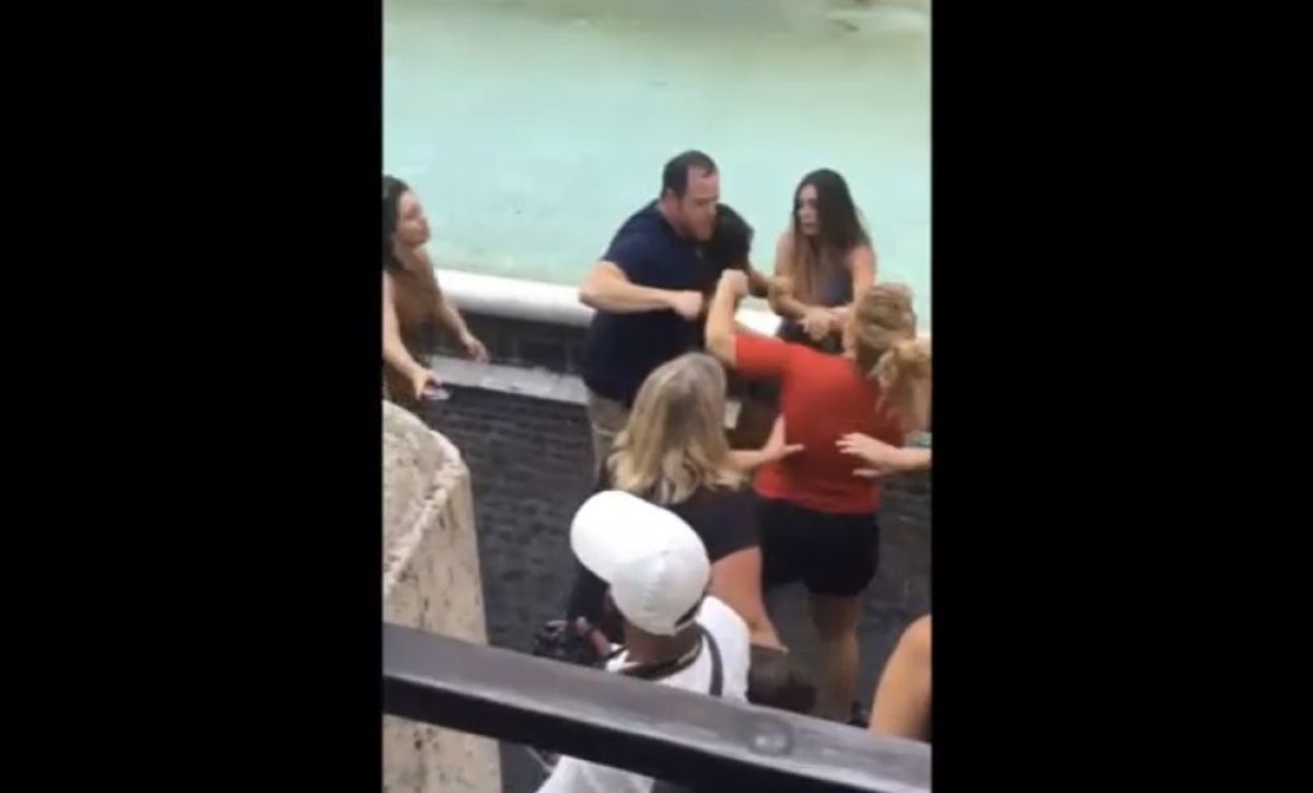 Vse skupaj se je začelo z izmenjavo nekaj sočnih med 19-letno Nizozemko in 44-letno Američanko italijanskih korenin, ker sta obe želeli posneti selfi na istem mestu trga Fontana di Trevi. Prepiru sta se kmalu pridružili še njuni družini. Spor se je stopnjeval od zmerljivk do prerivanja in klofut, vse skupaj pa je preraslo v pravi meddružinski pretep. V njem so po poročanju Anse sodelovale tudi tri mladoletnice.