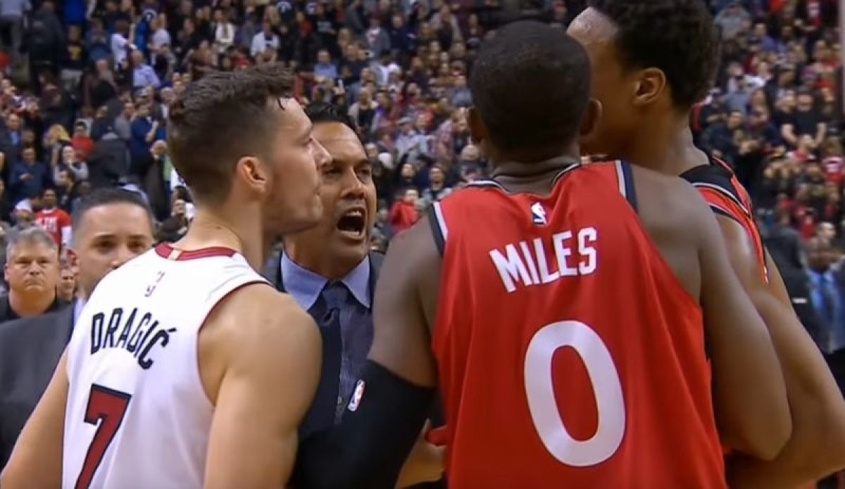 Slovenski košarkar Goran Dragić je bil prvi strelec Miami Heat, ki so v noči na sredo v Torontu premagali Raptors z 90:89. Po koncu tekme pa se je zaiskrilo.