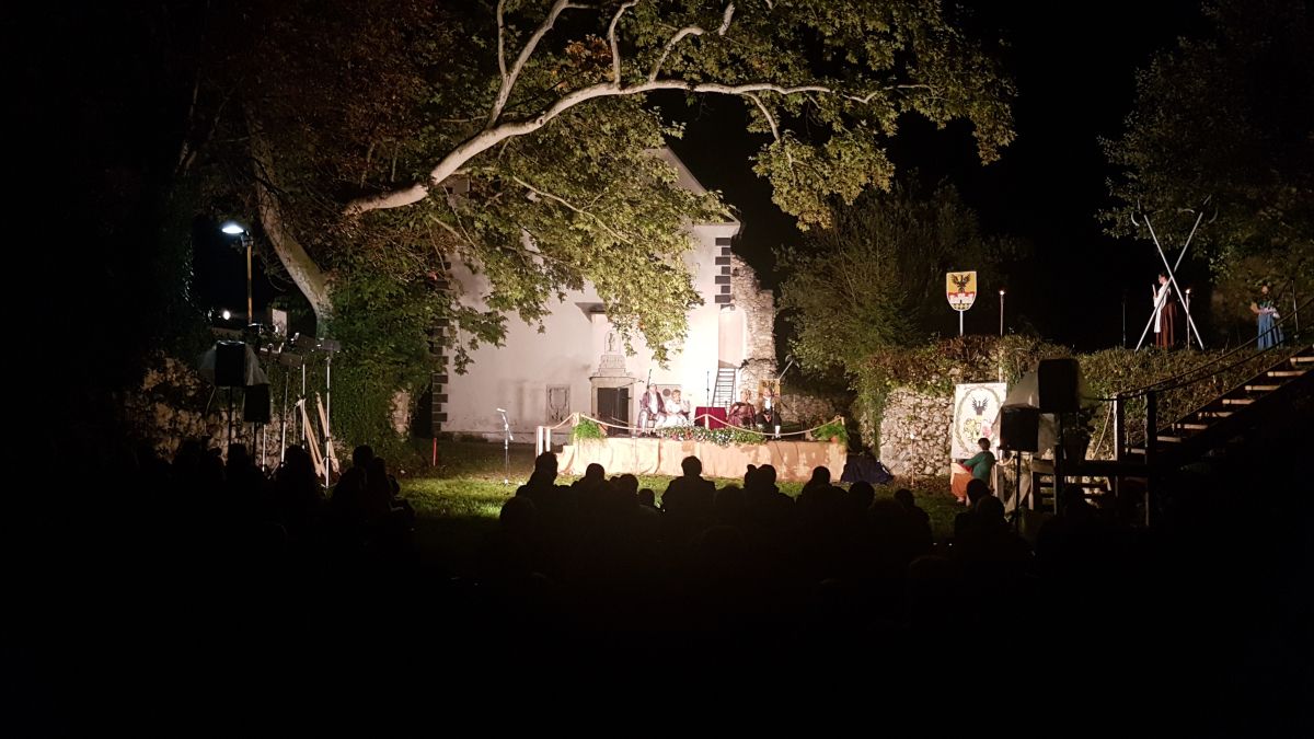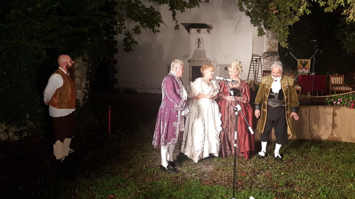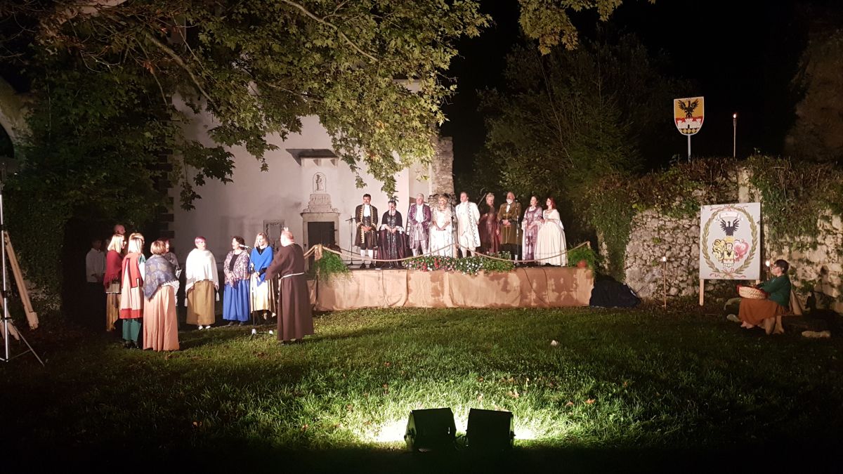 Čeravno je skozi celotno soboto vreme precej nagajalo, se je na večer vendarle toliko zjasnilo, da je lahko igralska zasedba pod vodstvo Jože Krajnca izvedla predstavo, s katero so nas vrnili v leto 1683 v čas turških vpadov. Razveseljivo je, da vsake toliko časa na nekoč imenitnem grajskem dvorišču, kjer se je v otroških letih podil Janez Vajkard Valvasor, ljubiteljski kulturniki pripravijo žlahtne grajske štorije, ki jih je spisal zdaj že pokojni lokalni umetnik Nande Razboršek. Škoda le, da nekoč slaven Medijski grad, ki so ga med drugo svetovno vojno porušili partizani, tako redko oživi.