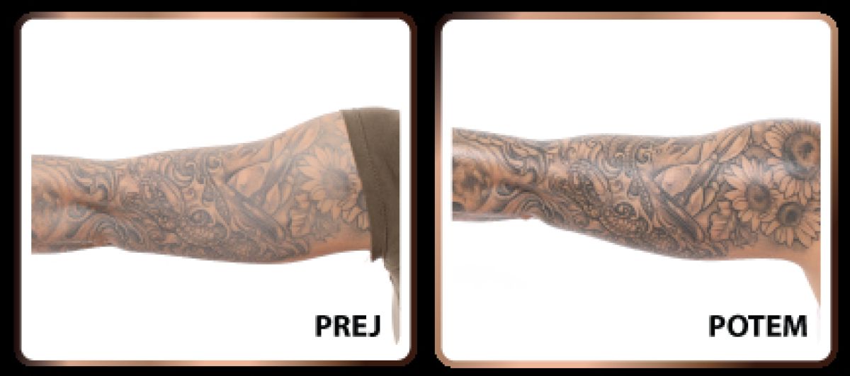 Pred in po 2 tednih redne uporabe mazila Tattoo Nano Shock: