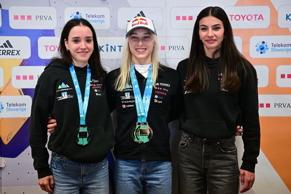Janja Garnbret in Rosa Rekar sta danes v Ljubljani slovenski javnosti pokazali kolajne, osvojene na svetovnem prvenstvu v športnem plezanju v Južni Koreji.