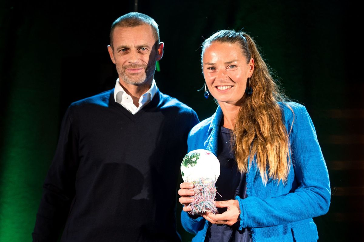 Na vprašanje glede njenega najljubšega nogometaša se Tina Maze ni želela poimensko opredeliti, je pa namesto tega namenila nekaj prijaznih besed predsedniku Uefe. "Največje nogometno ime trenutno v Sloveniji je sigurno Aleksander Čeferin. Nima veze toliko z igranjem kot s funkcijo, ampak mislim, da daje izjemno dober ugled Sloveniji," je dejala smučarska šampionka.