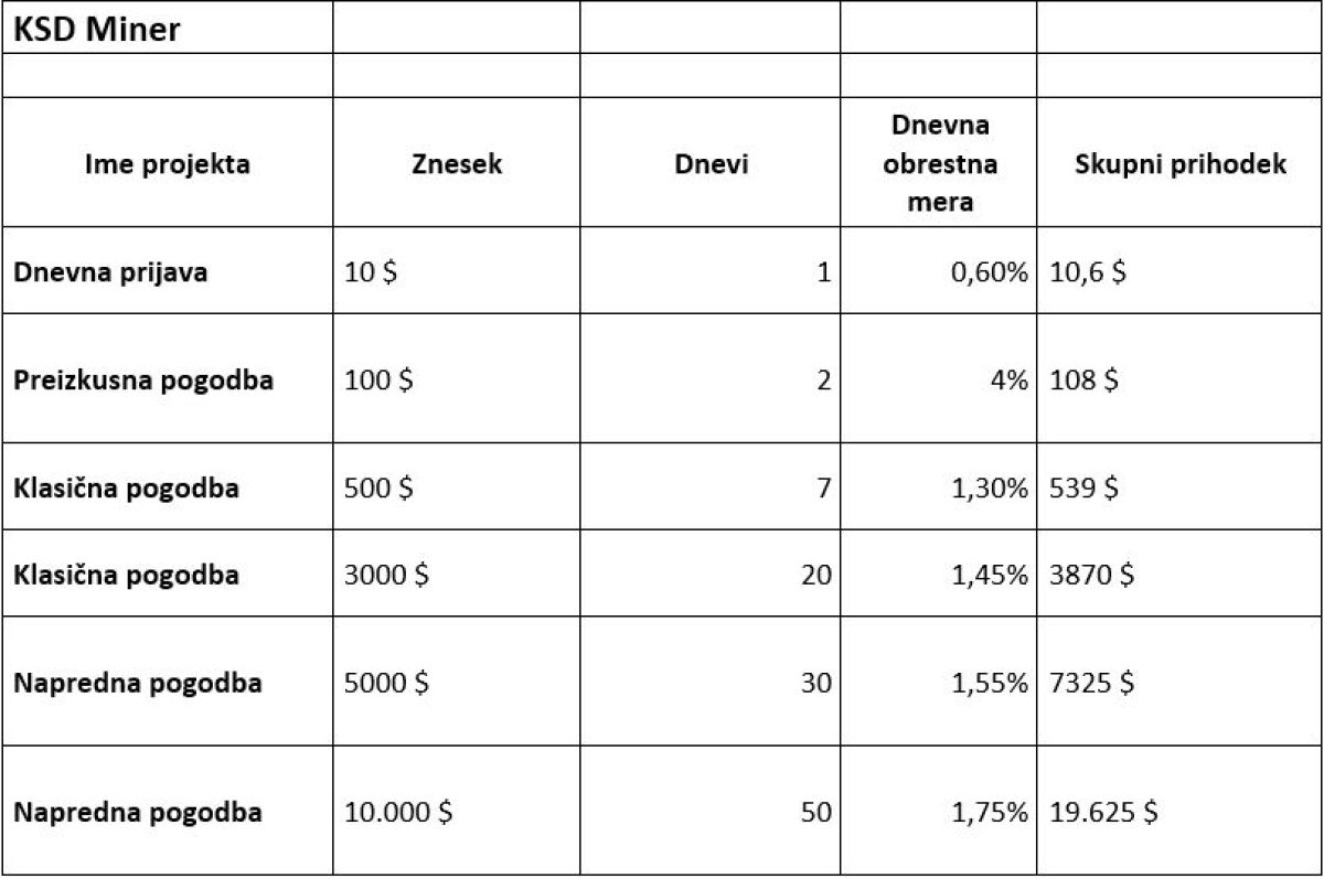 Kar loči KSD Miner od drugih, je izjemen dnevni pasivni dohodek, ki ponuja priložnost za zaslužek med 500 in 10.631 $ na dan ali več, kar uporabnikom omogoča, da uresničijo svoje sanje o bogastvu na spletu. Predstavljajte si, da ustvarjate znaten dohodek brez nenehnega truda ali zapletenih nastavitev – točno to ponuja KSD Miner.