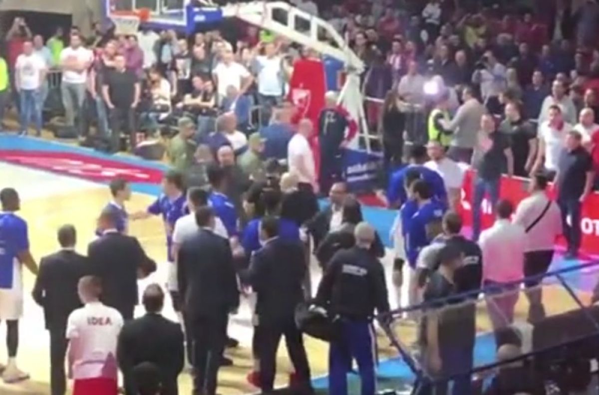 Košarkarje črnogorske ekipe so privrženci beograjskega kluba verbalno žalili že na poti od avtobusa do dvorane Aleksandar Nikolić, pri ogrevanju pa so na njih zmetali številne kovance, vžigalnike in plastenke.