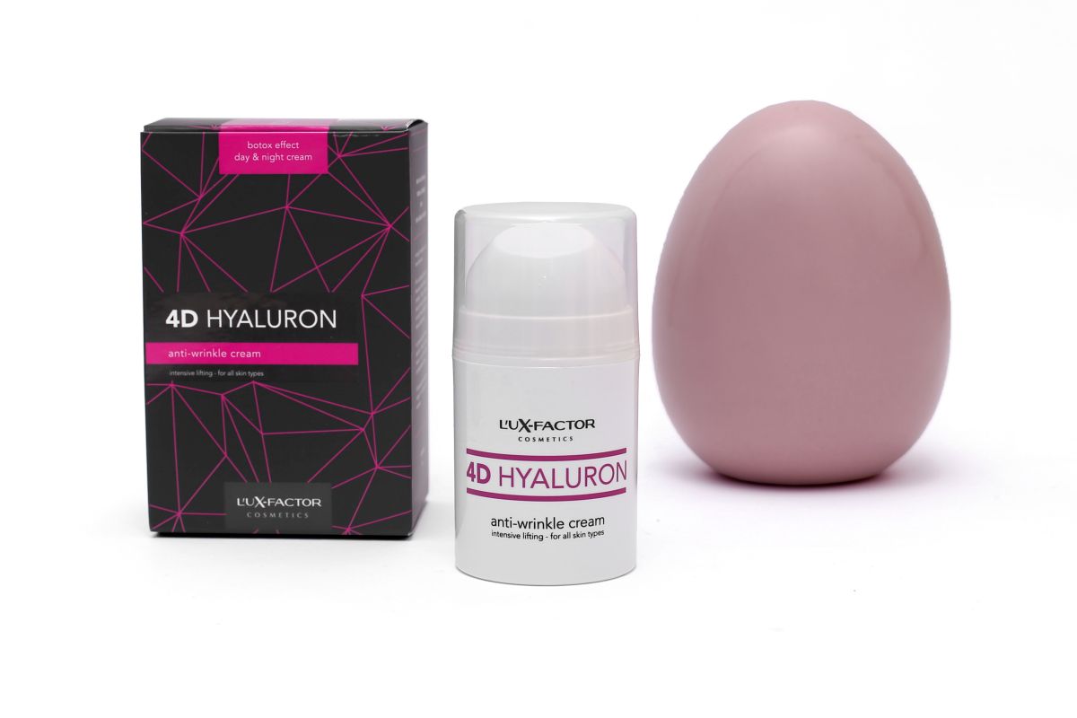 Idealna kombinacija 100 % naravne hialuronske kisline in senzacionalne formule proti gubicam zagotavlja, da je Lux-Factor 4D Hyaluron krema varna in dokazano učinkovita terapija proti gubam. S klinično in dermatološko testirano formulo se uvršča med najučinkovitejše inovacije v kozmetični industriji za zmanjševanje gub in preprečevanje staranja kože. Mikromolekulske mase aktivnih sestavin v Lux-Factor 4D Hyaluron kremi proti gubam prodrejo v globlje plasti kože, tako da z biotskim delovanjem v medceličnih membranah zapolnijo kožne gube od znotraj navzven. S slednjim poskrbijo za naravni botoks učinek in mladosten videz kože. Patentirana formula 4D Hyaluron s preizkušenimi sestavinami spodbuja naravni proces obnavljanja povrhnjice, zaradi česar koža zasije v boljšem tonusu. Idealna kombinacija učinkovin ščiti kožo pred škodljivimi zunanjimi vplivi, zato je koža ob redni uporabi kreme 4D Hyaluron napeta in mladostna.