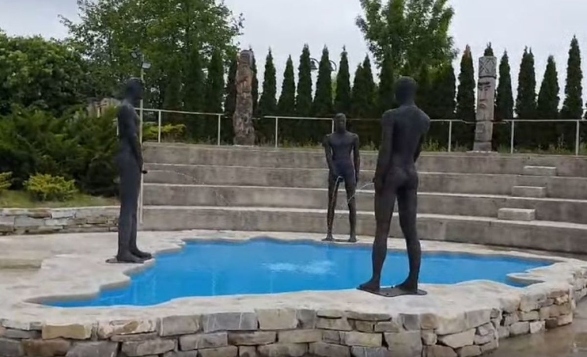Lastnik etnografske vasi Mirko Šakić je pojasnil, da so navdih za fontano dobili v Pragi, kjer pred muzejem Franza Kafke že 16 let stoji fontana Čurajici postavy. Znani češki umetnik David Černy je v bazen, ki je oblikovan kot zemljevid Češke, nasproti postavil dva kipa moških, ki urinirata v bazen.