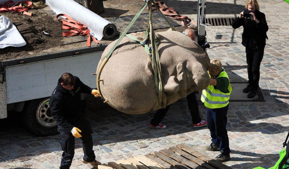Glava je bila nekdaj del skoraj 19 metrov visokega kipa Lenina, ki se je pel nad vzhodnim Berlinom. Po padcu komunizma je bil prevrnjen in razbit na več kot 100 kosov ter zakopan. Glavo so lani septembra izkopali v nekem peskokopu v južnem delu Berlina.