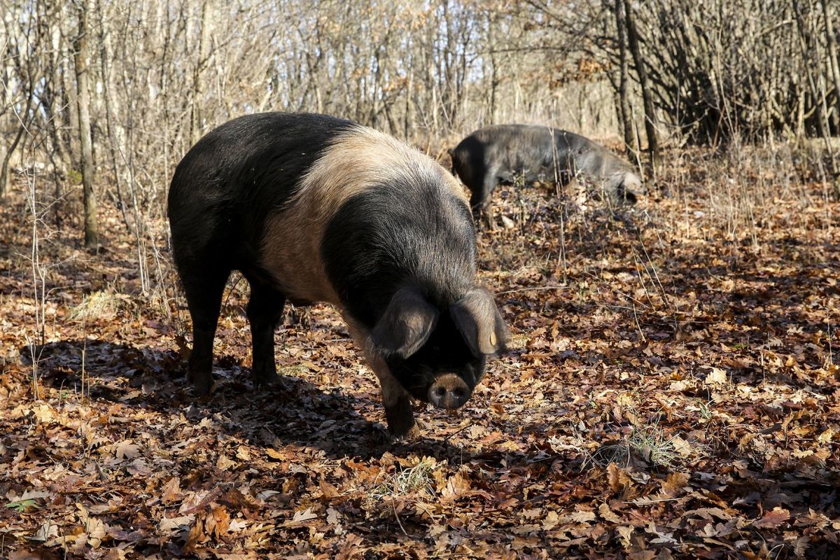 Dejanovi prašiči živijo na prostem. Hranijo se z želodom in kar še najdejo na tleh gozdička, še dodatno jim krmo dovaža gospodar, ki je prehrani prašičev podredil del pridelka svoje kmetije.