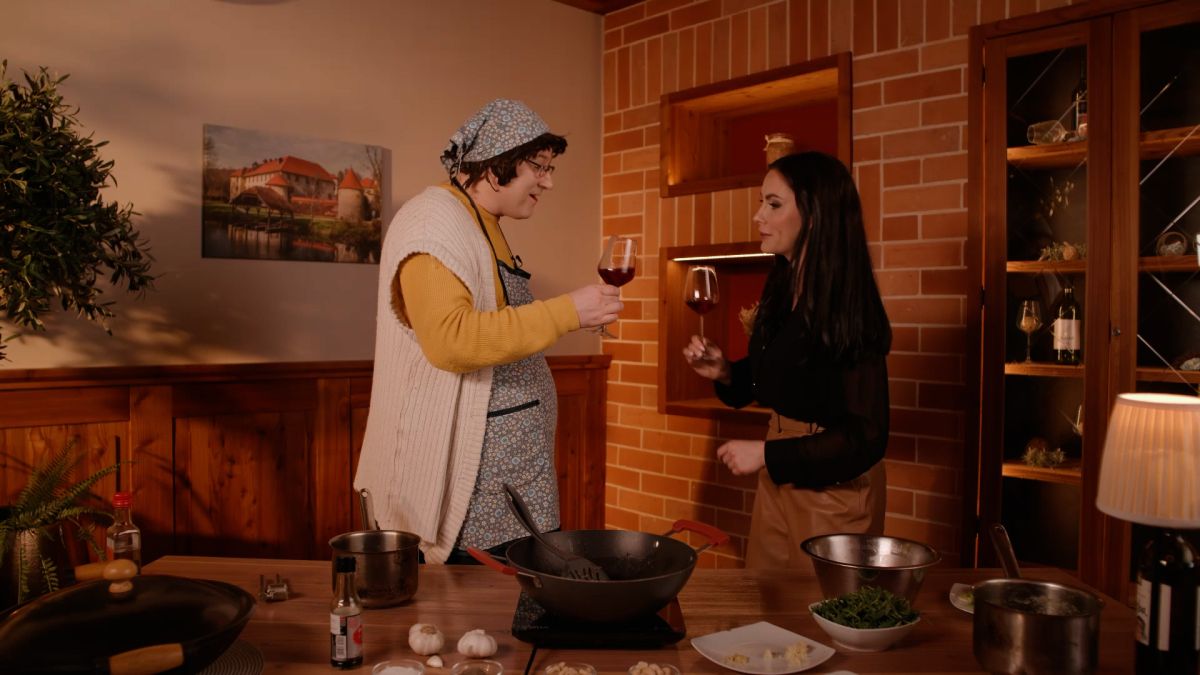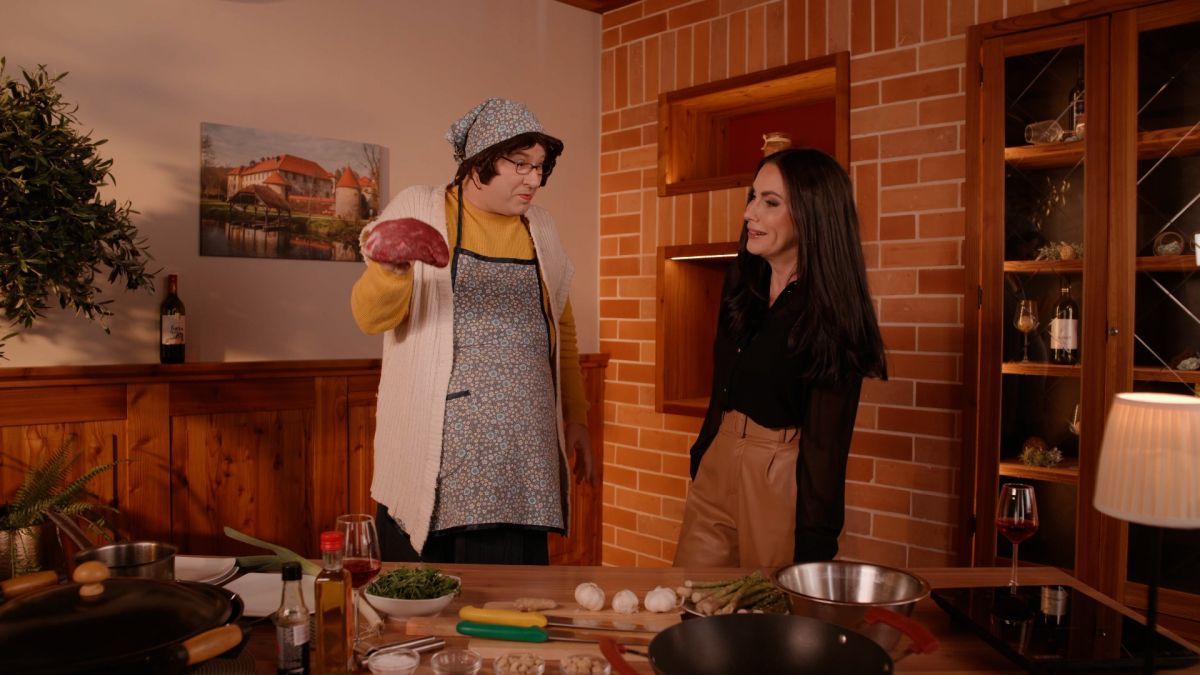 Ajda in Mama Manka sta se veselo družili tudi ob kozarčkih rujnega cvička, ki ga je Mama Manka pridelala kar sama. Kako radi imajo to pijačo Dolenjci, je Mama Manka pojasnila takole: Če te na Dolenjskem vprašajo, če boš piškot, rečeš: Kar natoči!