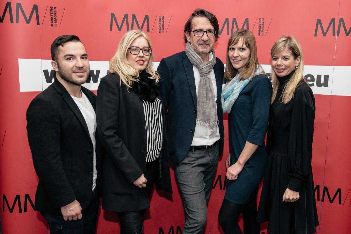 Ekipa Marketing Magazina ( MM) od leve: Gašper Meden, novinar, Ariana Nina Eror, direktorica marketinga in trženja, Marjan Novak, direktor in lastnik MM, Mateja Repovž, direktorica projektov in šole LSPR, Simona Kruhar Gabršček, urednica