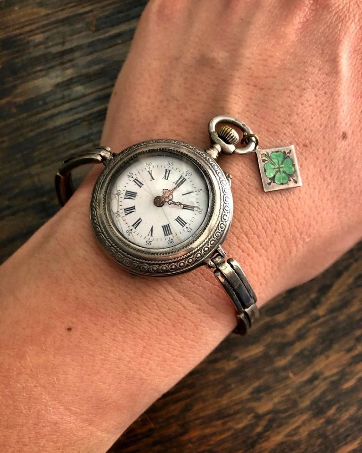 Kdo bi bil pripravljen odšteti 560 evrov za srebrno žepno uro Audemars Frères Geneve iz dvajsetih let prejšnjega stoletja? Ura ima pripadajoče žige in brezhiben mehanizem, ima pa poškodovano številčnico in je brez stekla. Sicer pa je za izklicno ceno 60 evrov mogoče kupiti srebrno žensko ročno uro iz sredine dvajsetih let prejšnjega stoletja. Takrat se je spremenila moda nošenja ženskih ur in so visečo uro na verižici predelali v ročno. Uri je pridan še obesek za srečo s štiriperesno deteljico.