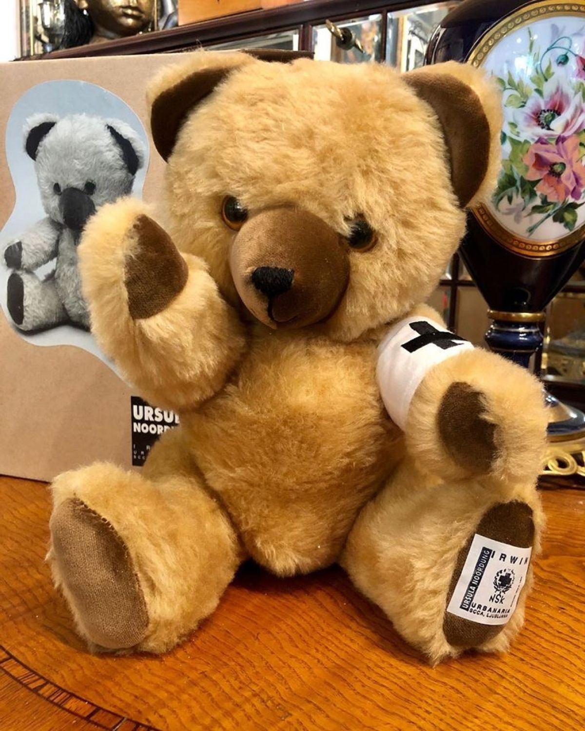 Za izklicno ceno 400 evrov je lahko vaša plišasta medvedka Uršula Noordung v kartonski škatli. Izdelana je bila v nekdanji izolski tovarni igrač Mehano, na njeni tački je vezen trak z Malevičevim črnim križem- nalepka NSK. Medvedka je bila narejena po naročilu Galerije Anonimus, ki je založila tudi avtorsko skodelico, izdelano v Kli Liboje; njena izklicna cena je 60 evrov.