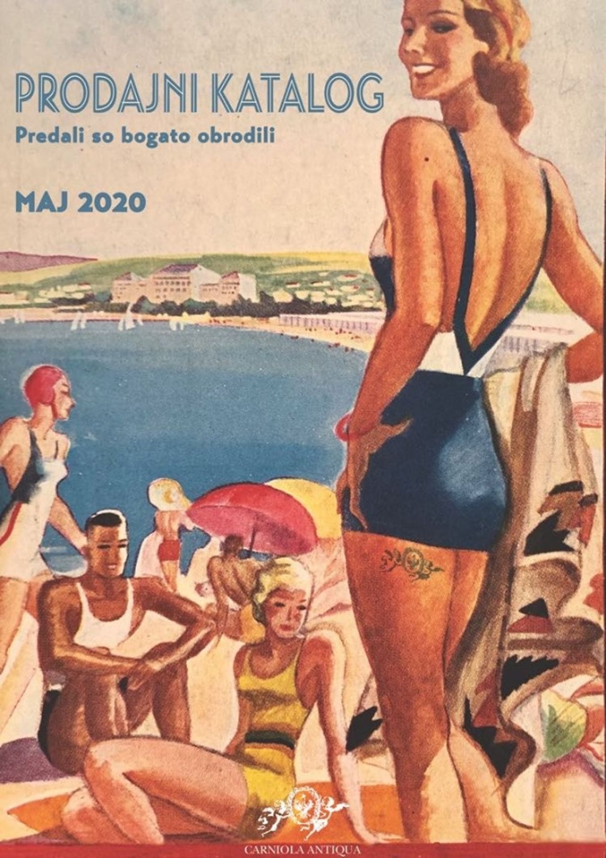 Naslovnica kataloga, ki jo je v sodelovanju z Nežo Lukančič pripravil Jaka Prijatelj, starinar in lastnik Carniole Antiqua, nam dela skomine po morju. Na njej je v ospredju brhka mladenka v modrih kopalkah s plaže letovišča Portorož. Gre za motiv s plakatne razglednice, narejene v dvajsetih letih prejšnjega stoletja in omenjene med starinami in umetninami v katalogu. Njena izklicna cena je 60 evrov. Za izklicno ceno 38 evrov lahko zbiratelji dobijo še druge morske motive, štiri barvne in eno črno belo razglednico Pirana in Portoroža iz leta 1939.