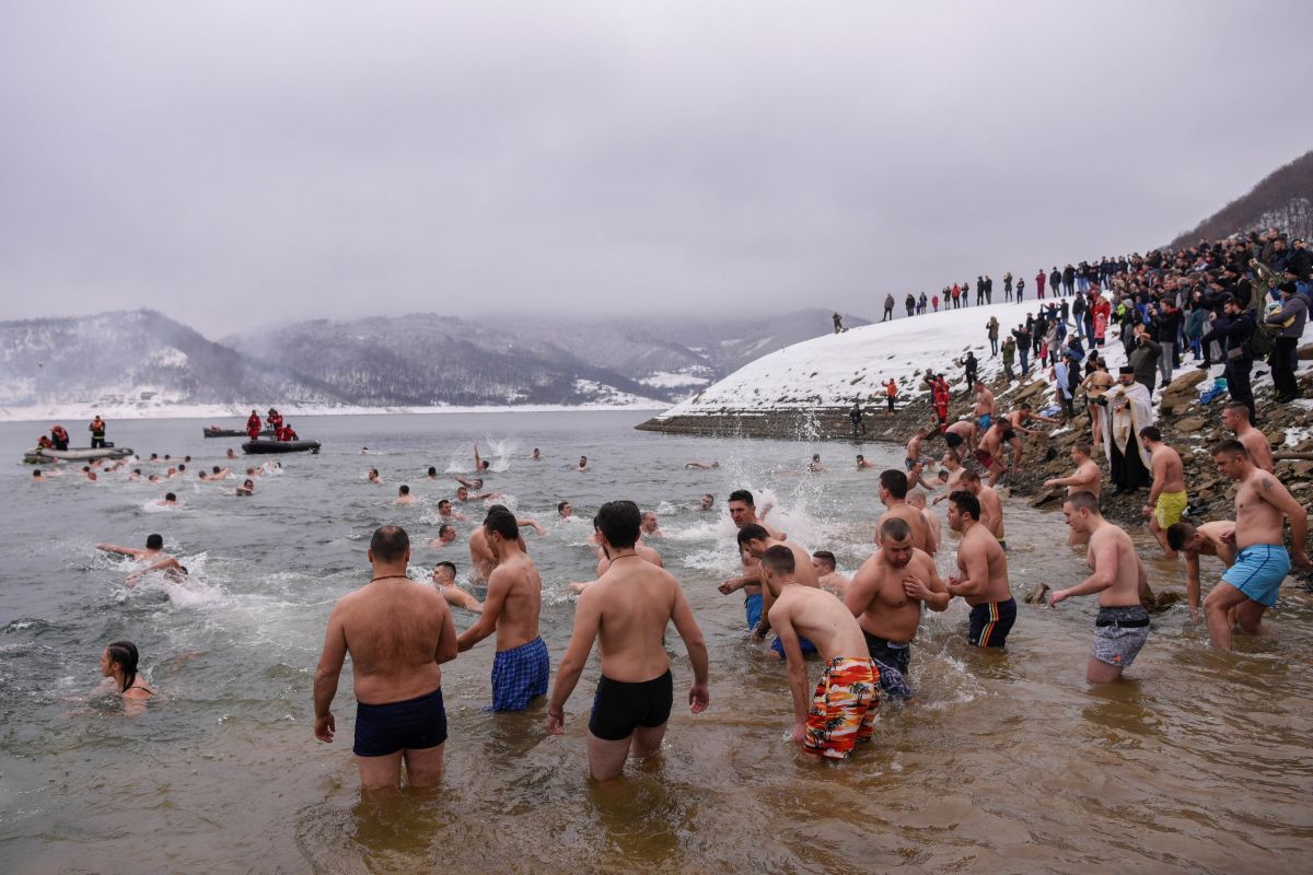 V najhladnejši regiji v državi Jakutija, kjer temperature te dni vztrajajo pri 42 stopinj pod lediščem, pa se je množici vernikov pri kopanju v reki Leni pridružil tudi tamkajšnji guverner.