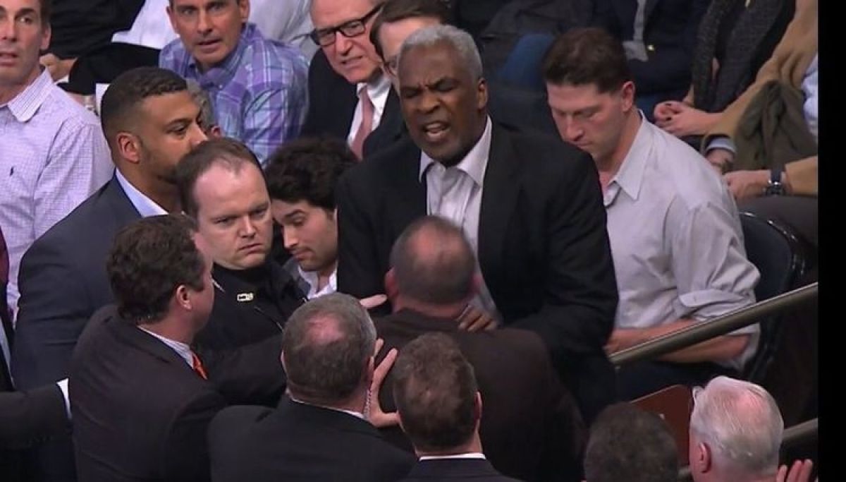 Charles Oakley, nekdanji zvezdnik košarkarskega moštva New York Knicks, je sinoči slovito dvorano Madison Square Garden zapustil v lisicah.