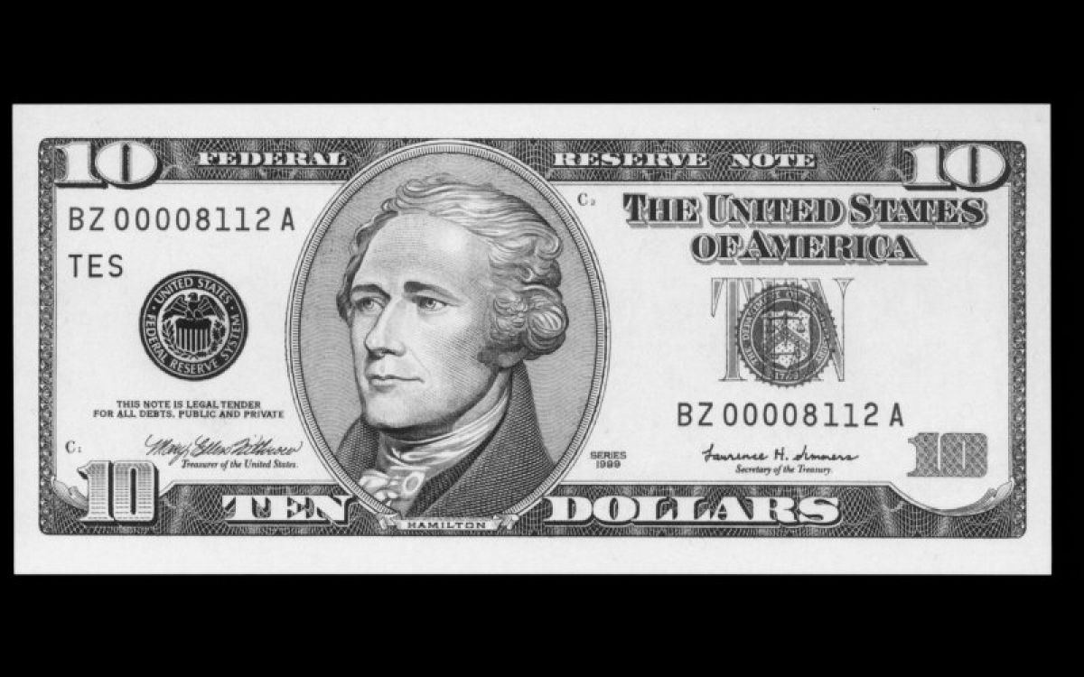 Desetdolarski bankovec od leta 1929 krasi podoba prvega ameriškega finančnega ministra in enega od tako imenovanih ustanovnih očetov države Alexandra Hamiltona, ki ga je v dvoboju ubil prav tako eden od ustanoviteljev ZDA Aaron Burr.
