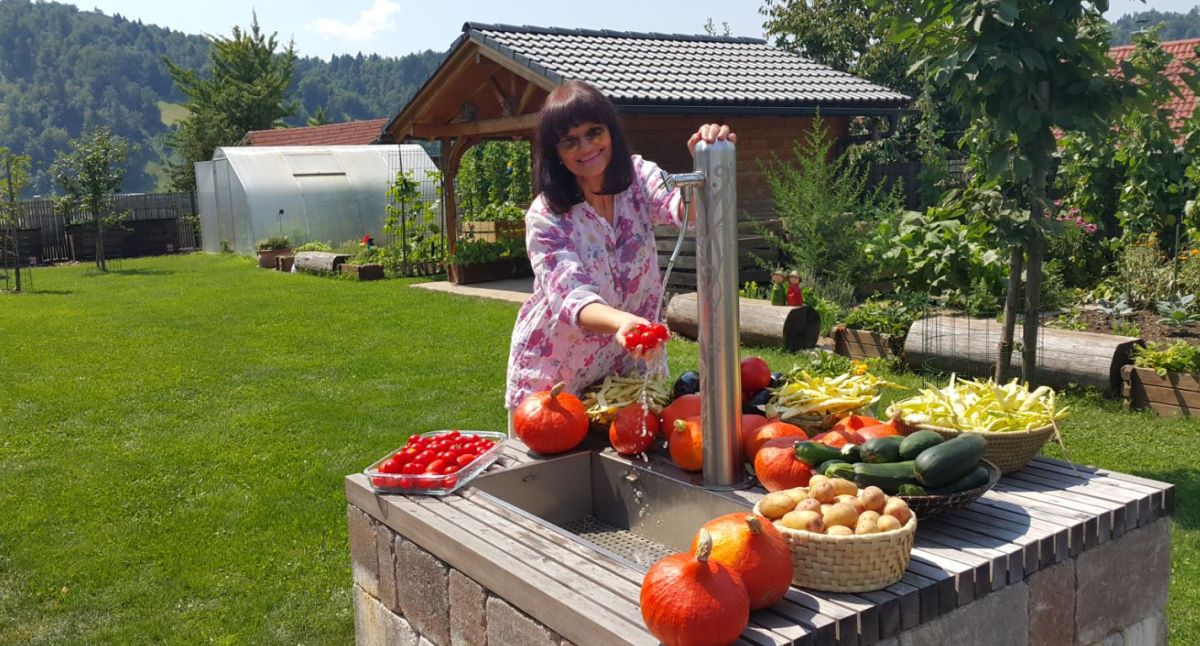 Ja, lahko rečem, da sva kar skoraj samooskrbna. Vrtnariva že več kot 40 let in tudi to je način življenja. Ni lepšega, kot jutro začeti z obhodom domačega vrta in nabrati zelenjavo in sadje za sočenje soka, polnega vitaminov in mineralov. Nobena kapsula se ne more primerjati s tem sokom. Poleg zelenjave imava tudi velik zeliščni vrt in domače sadje. Obožujemo maline, borovnice, češnje, pa tudi breskve , kaki, hruške, kivi in asimino imamo na vrtu. Vsak domač sadež ima veliko boljši okus kot kupljen. Domačo solato pa pri nas jemo vse leto, saj imamo tudi dokaj velik rastlinjak, v katerem vzgajamo paradižnik, paprike, jajčevce in lubenice, v hladnejših mesecih pa solato, ki zdrži do februarja. Ja, čez zimo pa pridejo na vrsto shranki, ki jih narediva poleti - vse zelenjavne omake, paradižnikove omake, sataraš, polnjene paprike. Tako, da dela in veselja z domačo hrano pri nas nikoli ne zmanjka.