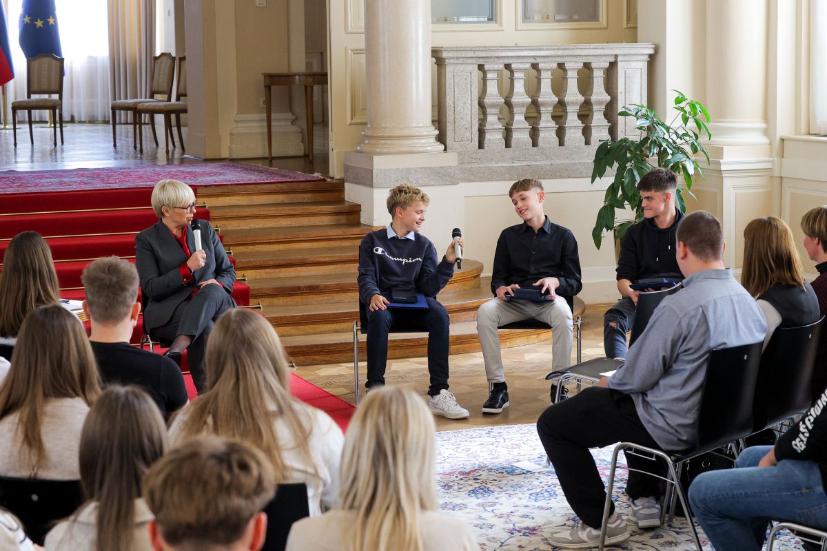 Prav zato so bili na slovesni dogodek povabljeni tudi dijaki Gimnazije in zdravstvene šole Šolskega centra Nova Gorica ter dijaki Srednje gozdarske, lesarske in zdravstvene šole Postojna. Z njimi se je predsednica republike, skupaj s tremi mladimi prejemniki priznanj, v nadaljevanju dogodka pogovarjala tako o konkretnem dogodku pa tudi nasploh o družbenih vrednotah, kot so solidarnost in medsebojna pomoč. To so vrednote, ki se kažejo tudi v vsakdanjih trenutkih, ko prisluhnemo drug drugemu, ponudimo roko tistemu, ki se znajde v stiski, ali pa se skupaj veselimo uspehov.