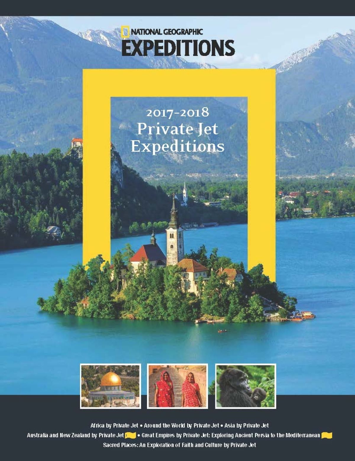 National Geographic je na naslovnico kataloga luksuznih potovanj z zasebnim letalom umestil podobo Bleda.