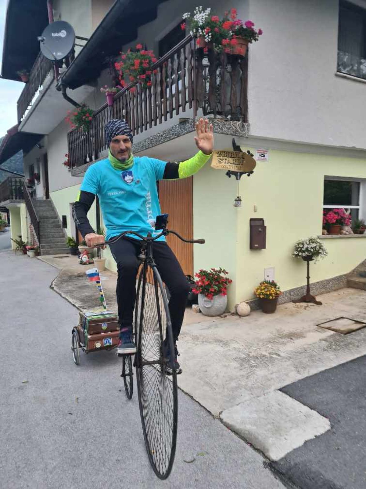 Vedoč, v kaj se podaja, se je Peter Habe povsem posvetil vadbi vožnje s tem zloveščim starodobnikom med letošnjim poletjem. »Z njim sem se vozil tudi šest ur dnevno, lotil sem se še skrbnega načrtovanja poti,« je Habe povedal za Reporter, preden se je v ponedeljek, 25. septembra ob deveti uri zjutraj, odpravil na pot: »Prav zaradi izjemno nevarne vožnje moje potovanje nikakor ne poteka po najbolj prometnih cestah in tudi ne po kakšnih strmih klančinah, saj jih s kolesom ne bi mogel premagovati. Na pot s seboj sem vzel še prtljago, dva starodobna kovčka, ki ju tovorim na manjši prikolici, pritrjeni na zadnje kolo.«