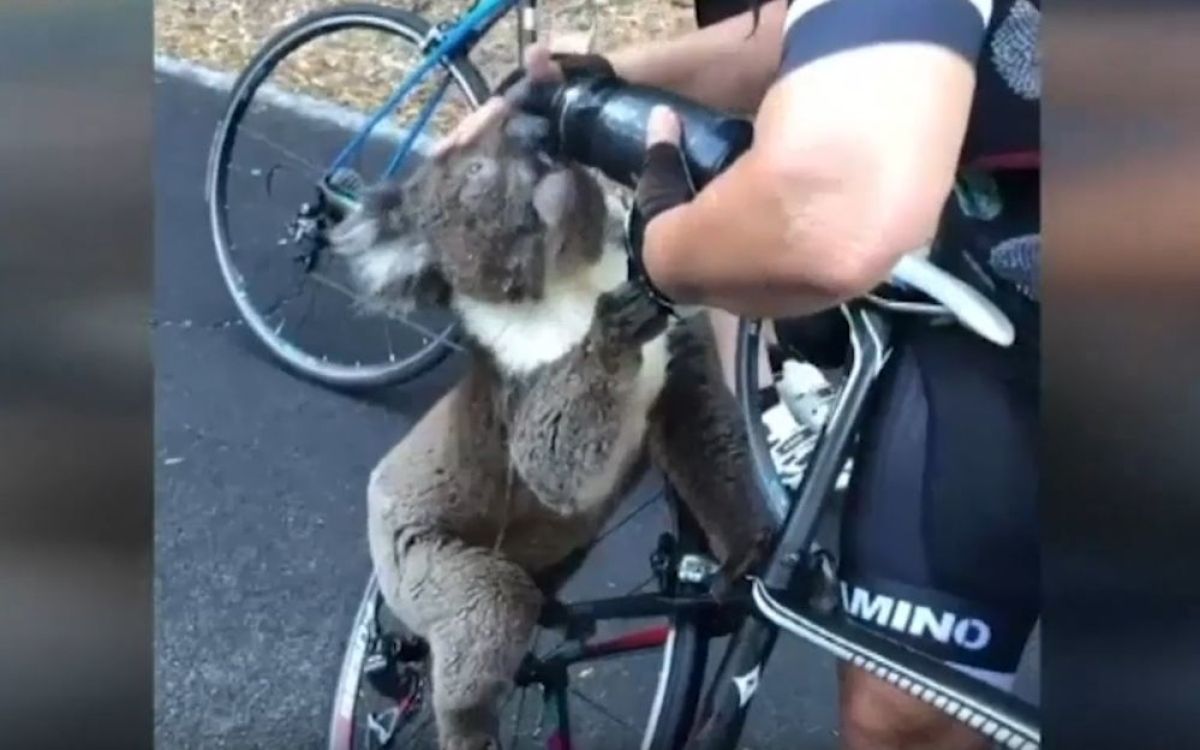 Koala je sredi peklenske vročine v Avstraliji ustavila skupino kolesarjev, ker je bila žejna. Kolesarji so žival zagledali sredi ceste blizu mesta Adelaide in ko so se ji približali, je prišla do njih in jih očitno prosila za vodo.