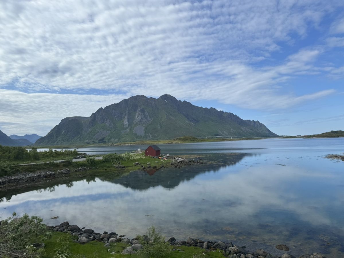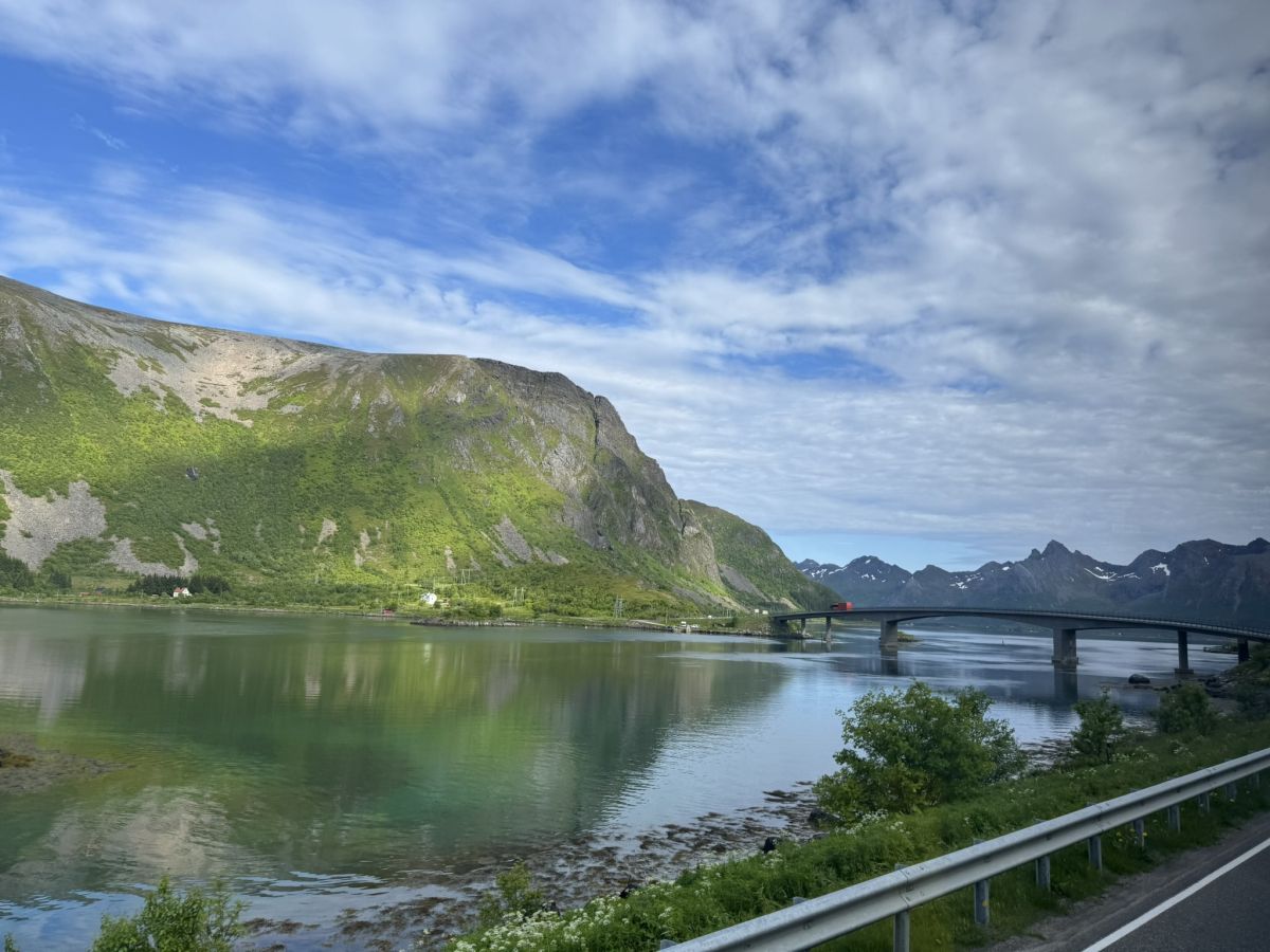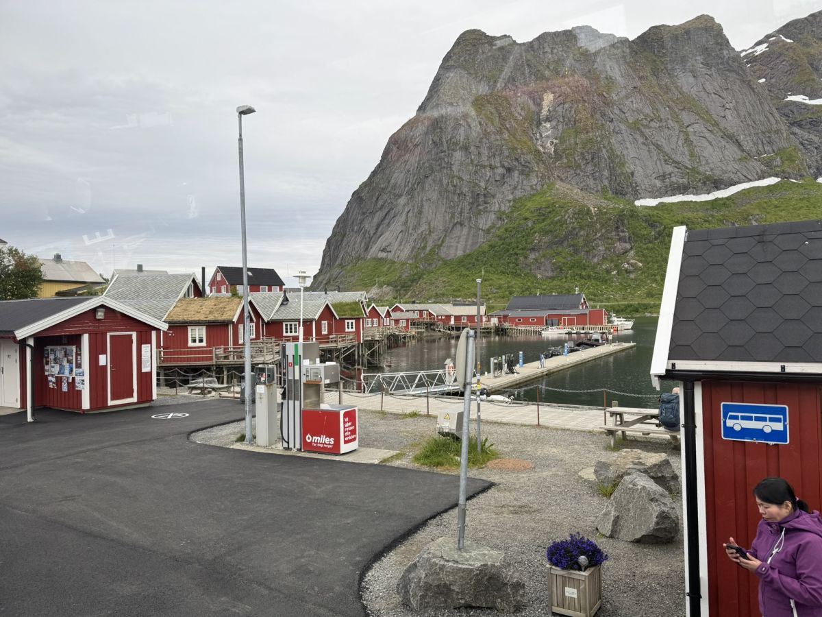 Lokalni avtobus družbe Nortland po Lofotih do Svolvarja je bil napol poln, nanj so na postajališčih vstopali in izstopali tako lokalci kot turisti. Medtem ko smo potniki uživali ob naravnost božanskih razgledih, pa je bil šofer avtobusa zaradi neznosne gneče polno zaposlen z vožnjo po ozki in vijugasti cesti ter mostovi in predori samo z enim voznim pasom ter obveznim čakanjem pred rdečo lučjo. Za vožnjo po Lofotih je treba imeti res veliko spretnosti in jeklene živce. Da sem bil na napačnem avtobusu, sem ugotovil šele na cilju, saj smo ga dosegli kako uro pred planom. Tako je splavala po vodi tudi priložnost obiskati ribiško vasico Henningsvar, znano po svojem spektakularnem nogometnem igrišču, ki leži na skalnem otočku, obkroženem z morjem in gorami.
