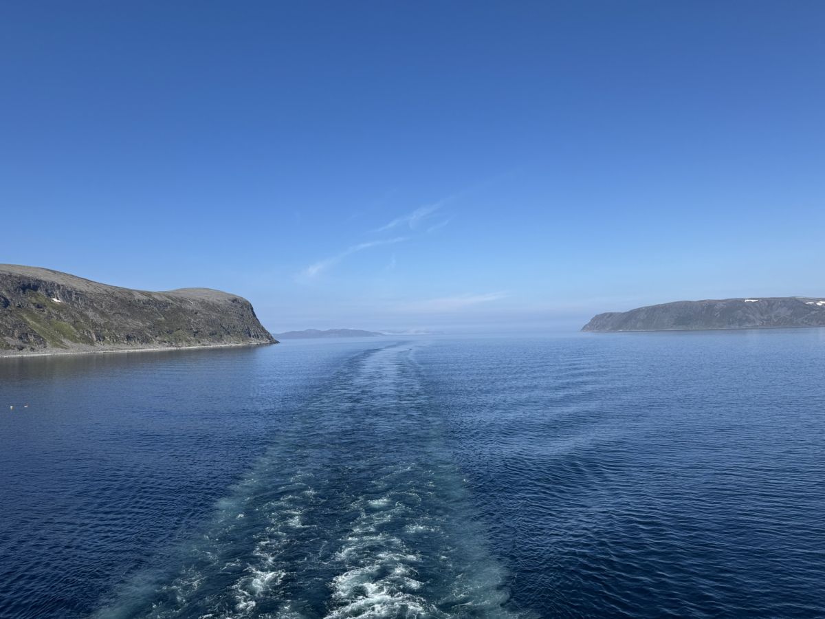 Zadnji del potovanja do Nordkappa je bil najlepši, saj sem večji del polarnega dneva (ponoči) preživel na palubi ladje Hurtigruten. Plovba med otoki po fjordih na severu je bila naravnost magična. Do moje končne postaje, mesteca Honnigsvag, kamor smo pripluli nekaj pred enajsto dopoldne, smo se na kratko ustavili v štirih ali petih pristaniščih. Večinoma so z viličarjem natovarjali ali iztovarjali palete tovora, na enem postanku pa sta z ladje izstopila tudi dva potnika. V Honnigsvagu pa se je s Hurtigrutna izkrcala cela čreda večinoma nemških turistov v zrelih letih, ki so napolnili štiri avtobuse, potem pa so jih odpeljali na izlet proti Nordkappu.