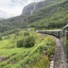 Železniška proga se dobrih dvajset kilometrov vije po strmih pobočjih, po katerih teče kar nekaj slapov, do zgornje postaje Myrdal pa je iz fjorda 866 metrov višinske razlike. Gre za eno najbolj strmih železnic na svetu, na nekaterih odsekih je naklon kar 55 promilov, proga pa je speljana kar skozi 20 predorov, od tega jih je bilo 18 izkopanih ročno. Flamsbano so gradili kar 17 let, uradno pa je bila odprta leta 1940. Da so železniško kompozicijo najprej poskusno vlekle parne lokomotive, izvem med obiskom muzeja tik ob spodnji postaji v Flamu. Na polovici poti, kjer je vzporedno položen še en tir, se kompozicija prvič ustavi, da se ogne drugemu vlaku, ki prihaja iz nasprotne smeri.