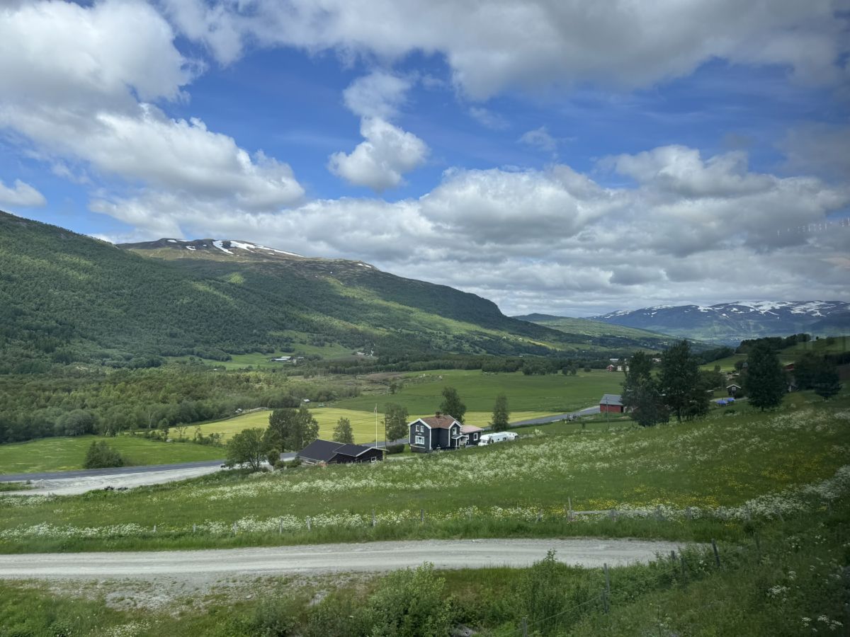 Spodnji del Norveške pa vse tja čez arktični krog do zadnje postaje v mestu Bodo sem prekrižaril z vlaki. Potovanje z norveškimi železnicami VY (preimenovanih iz NSB) je udobno in ni tako drago, če vozovnice kupiš po spletu vsaj kak mesec vnaprej. Z vlakom sem se peljal od Bergna proti Oslu (sedem ur), od Osla proti Trondheimu (šest ur in pol) in od Trondheima proti Bodu (skoraj deset ur). Železniška proga med Bergnom in Oslom velja za eno najlepših na svetu. V skupni dolžini približno 500 kilometrov se vije čez mogočno gorsko planoto Hardangerviddo v nacionalnem parku, kjer je na 1222 metrih nadmorske višine najvišja železniška postaja na Norveškem Finse.