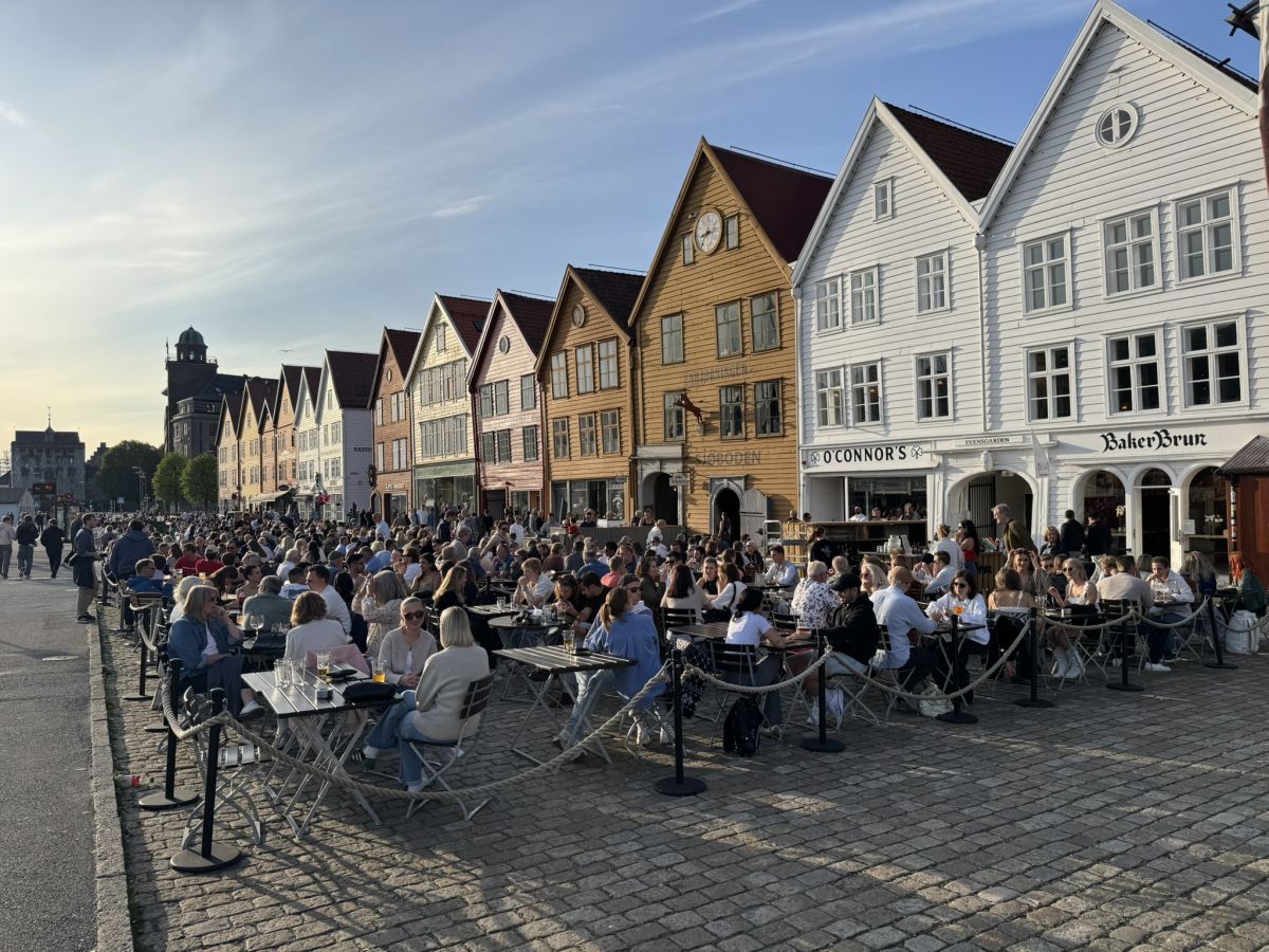 Tisto soboto popoldne 21. junija je bil ravno poletni solsticij. Najdaljši dan v letu, ko je sonce doseglo svojo najbolj severno lego na nebu. Po 18. uri, ko je sonce svetilo še na polno, saj bo ta dan zašlo šele po 23. uri, je na terasah lokalov pred slikovitimi lesenimi hišami v starem delu mesta (Bryggen) sedelo malo morje ljudi. Gneča je bila nepopisna tudi v bližnjem pristanišču, na znameniti ribji tržnici, tudi pred zabojniki in kombiji z ulično hrano so se vile dolge vrste.