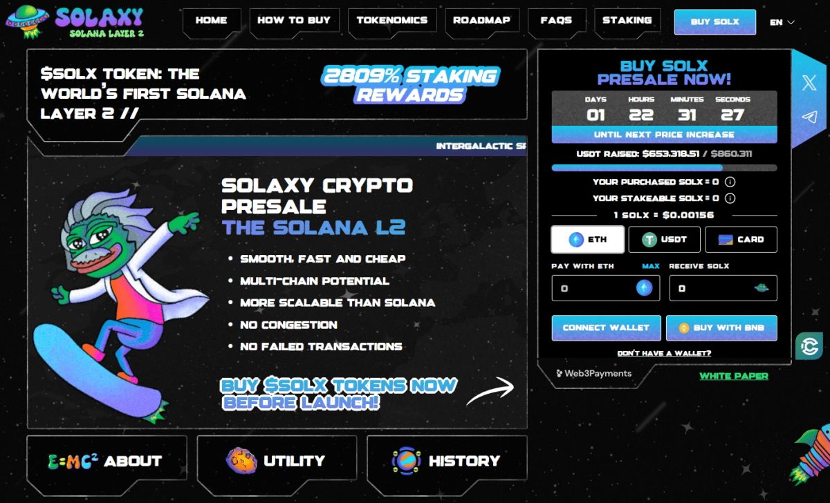 2. Solaxy ($SOLX) - Prvi Layer 2 na blockchain Solana s 1300 % nagradami za staking