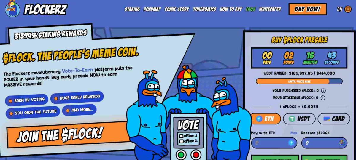 3. Flockerz ($FLOCK) - Nov projekt meme kovancev z revolucionarnim mehanizmom „Vote-to-Earn