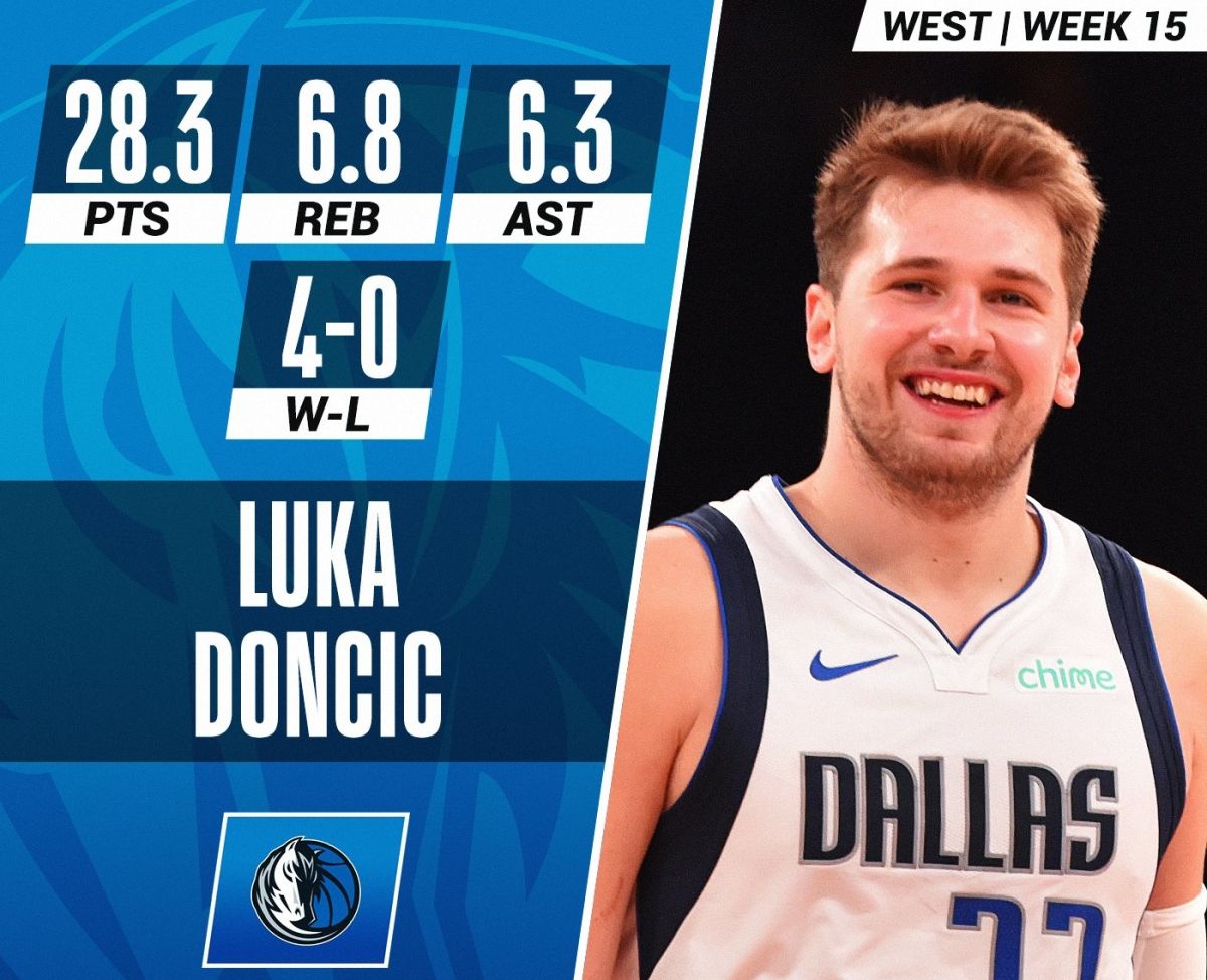 Dvaindvajsetletni Ljubljančan je bil v zadnjem tednu ključni mož ob štirih zaporednih zmagah Dallasa, na parketu pa je v povprečju dosegel 28,3 točke, 6,8 skoka ter 6,3 podaje.