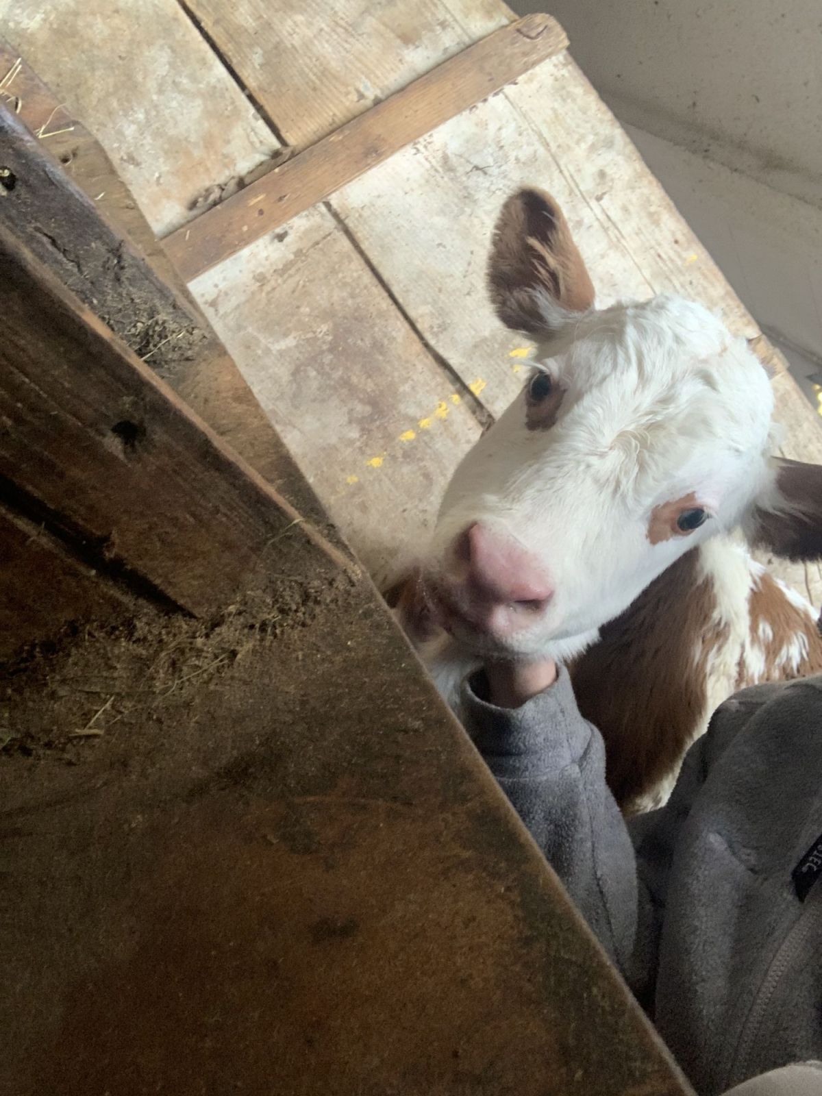 Tako je. Ah, moja zlata mama in ata. Veliko sem se naučila in še danes se. Eden izmed najlepših momentov mi je spomin, ko je »moja« kravica Rajda skotila telička in jaz sem bila zraven pri kotitvi. Ves čas sem bila potem pri tem teličku, z njim ležala na senu … se spomnim, ko je ata za hec rekel, če bom prespala kar v hlevu. (smeh) Z mamo sva veliko kuhali in potem vse to tudi radi pojedli. Vedno, ko sem prišla na počitnice, sva potem skuhali eno jed, ki sem jo imela jaz zelo rada, npr. orehove štruklje. Jedli smo domače, ekološko. Pobirali krompir, jabolka in se vozili s traktorjem.